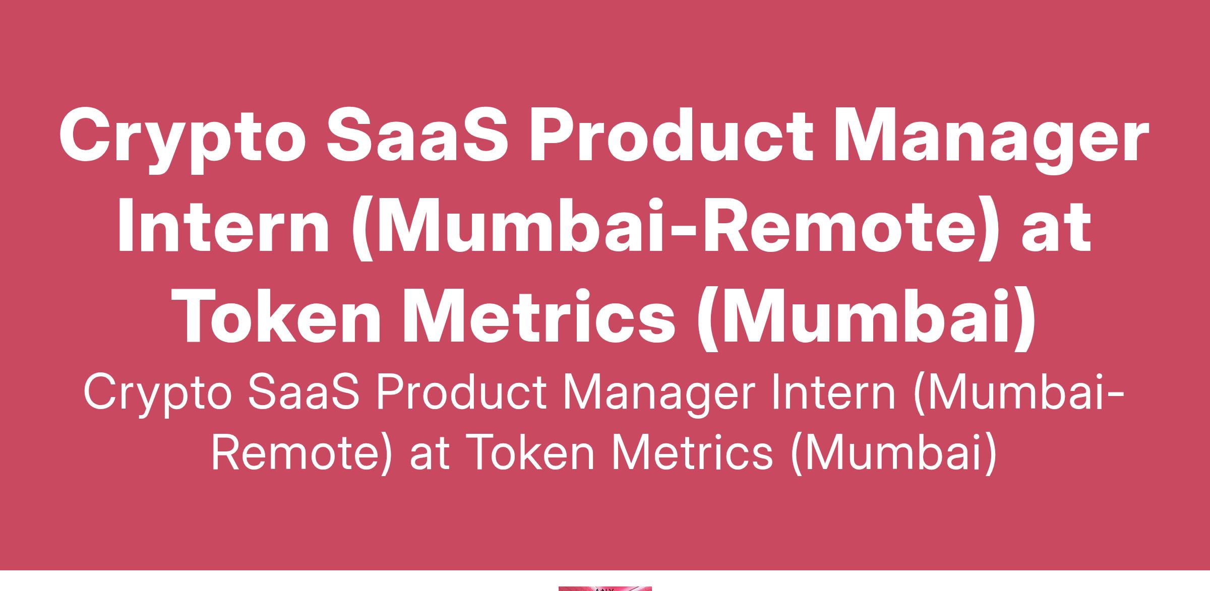 Crypto SaaS Product Manager Intern (Mumbai-Remote) at Token Metrics (Mumbai)