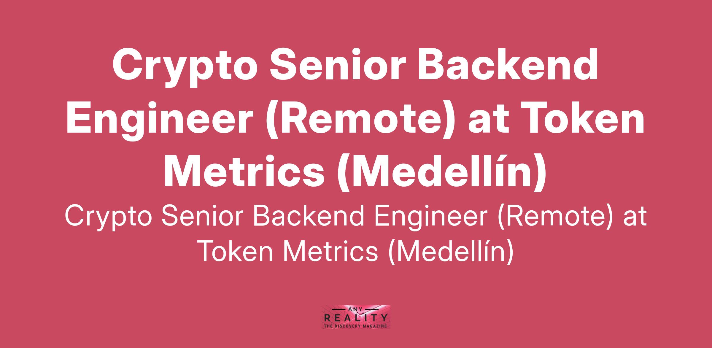 Crypto Senior Backend Engineer (Remote) at Token Metrics (Medellín)
