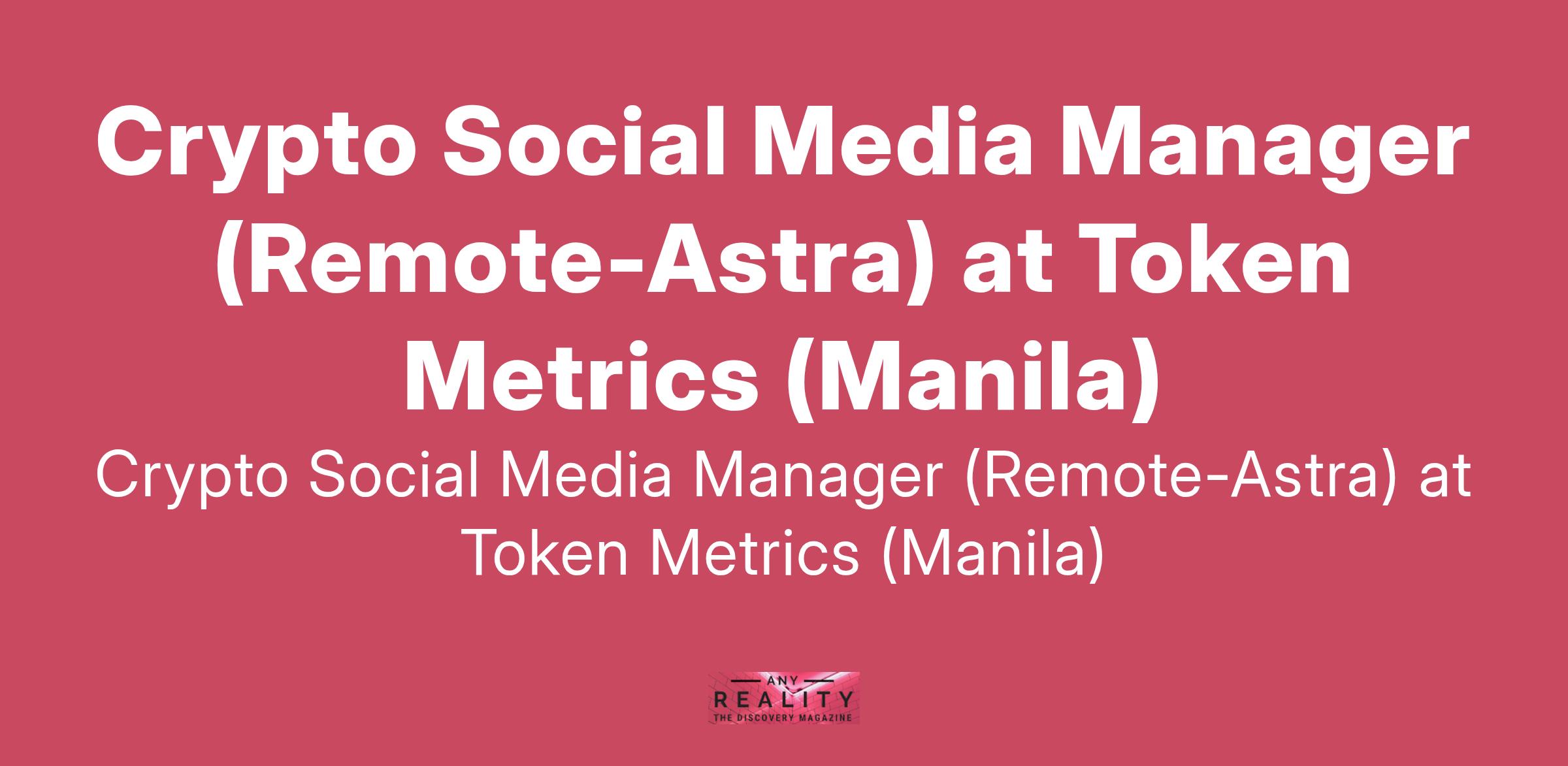 Crypto Social Media Manager (Remote-Astra) at Token Metrics (Manila)