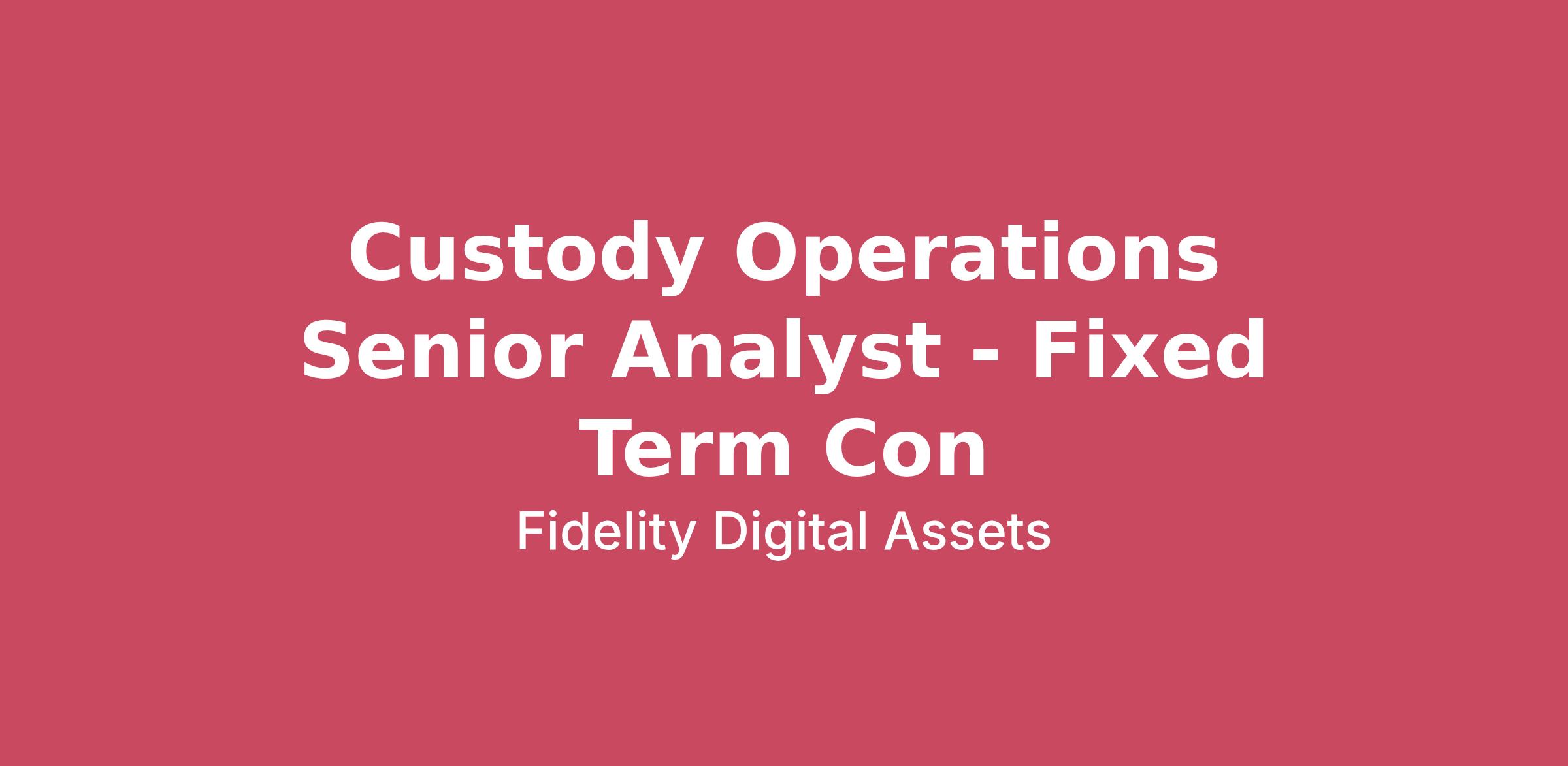 Fidelity Digital Assets Services℠ (FDAS) is an exciting new business unit that is focused on bringing emerging concepts to life in the digital asset arena and delivering those solutions to Fidelity clients and prospects. Within this, the Custody Operations team are responsible for reconciliations, settling client trades, facilitating movement of both fiat currency and cryptocurrency in and out of clients’ accounts, storing the cryptocurrency securely and maintaining the books and records platform. To be effective, you will work closely with the Client Service team, Execution Services, Implementation Managers, and the technology teams to ensure client requirements are met. With your knowledge and commitment, you will become a collaborative and resourceful member of the FDAS team, sharing best practices and driving successful results.