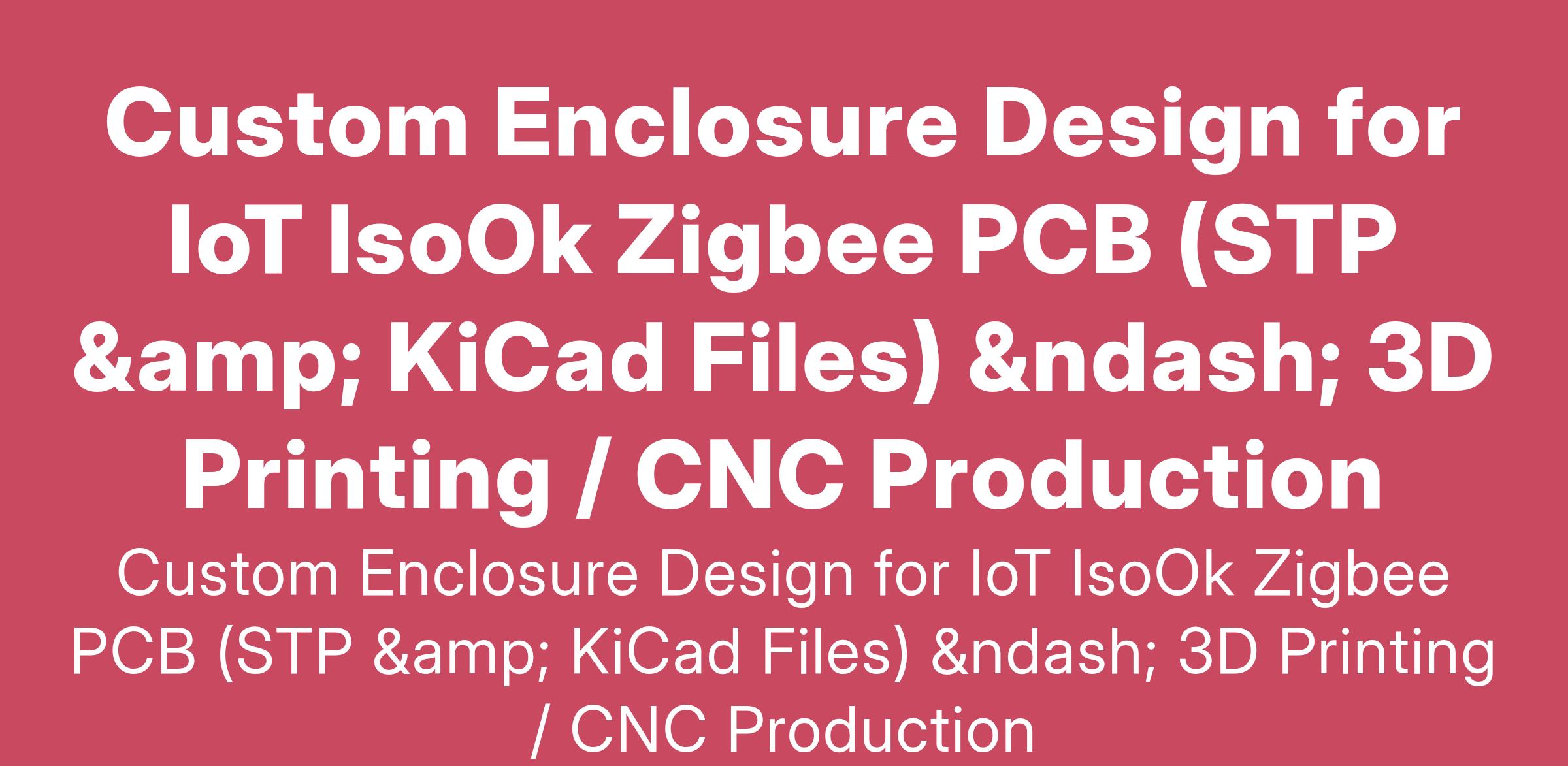 Custom Enclosure Design for IoT IsoOk Zigbee PCB (STP & KiCad Files) – 3D Printing / CNC Production. ? Project Objectives: ✔ Design a perfect enclosure based on the STEP file of the PCB and KiCad project... (Budget: €30 - €250 EUR, Jobs: 3D Modelling, CAD/CAM, PCB Layout, Product Design, Solidworks)