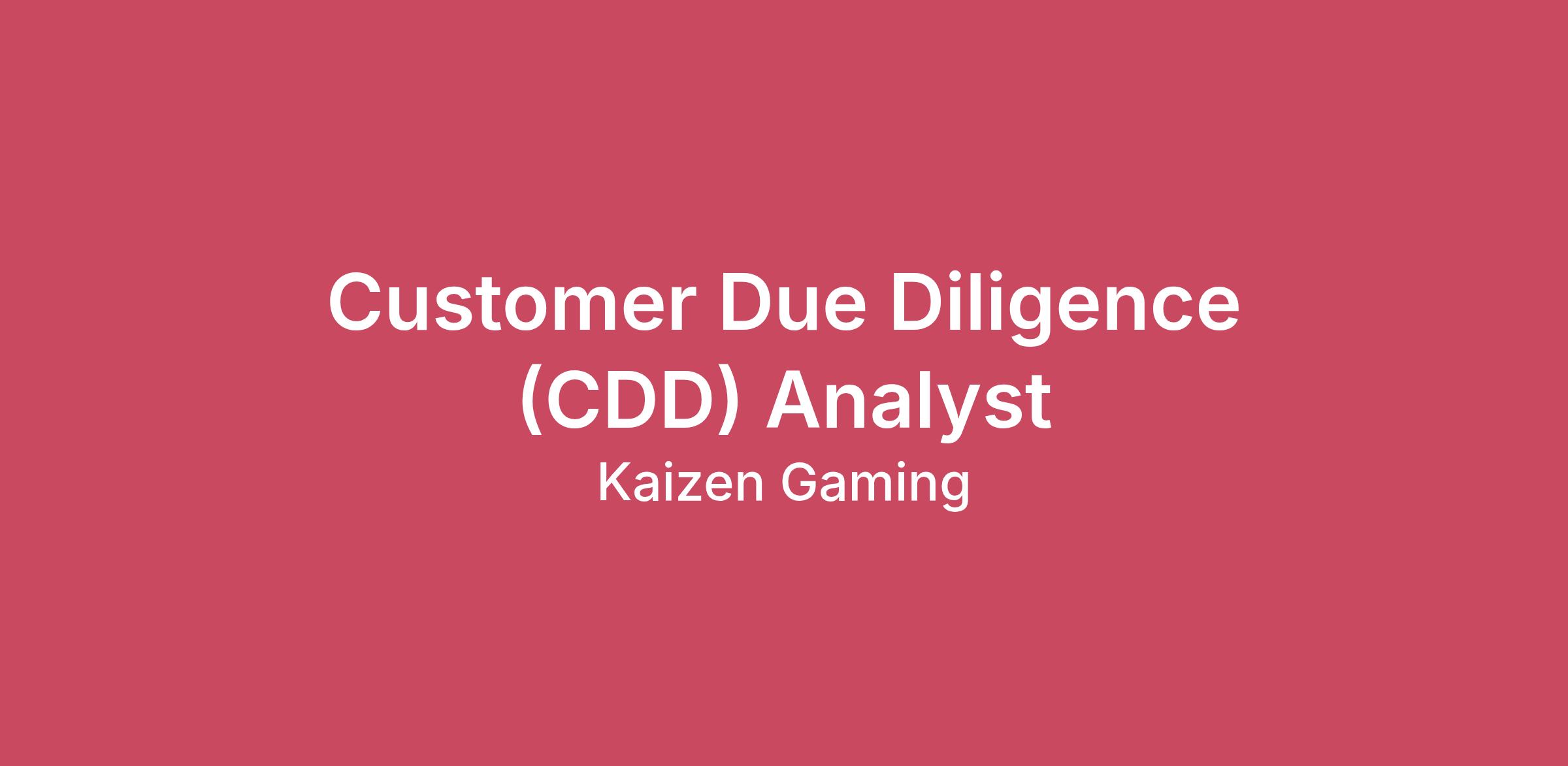 As a CDD Analyst, you will handle Customer Due Diligence (CDD) and Enhanced Due Diligence (EDD) matters on a daily basis, ensuring Kaizen’s onboarding, verification and ongoing monitoring controls are performed effectively and in line with internal standards and regulatory requirements.