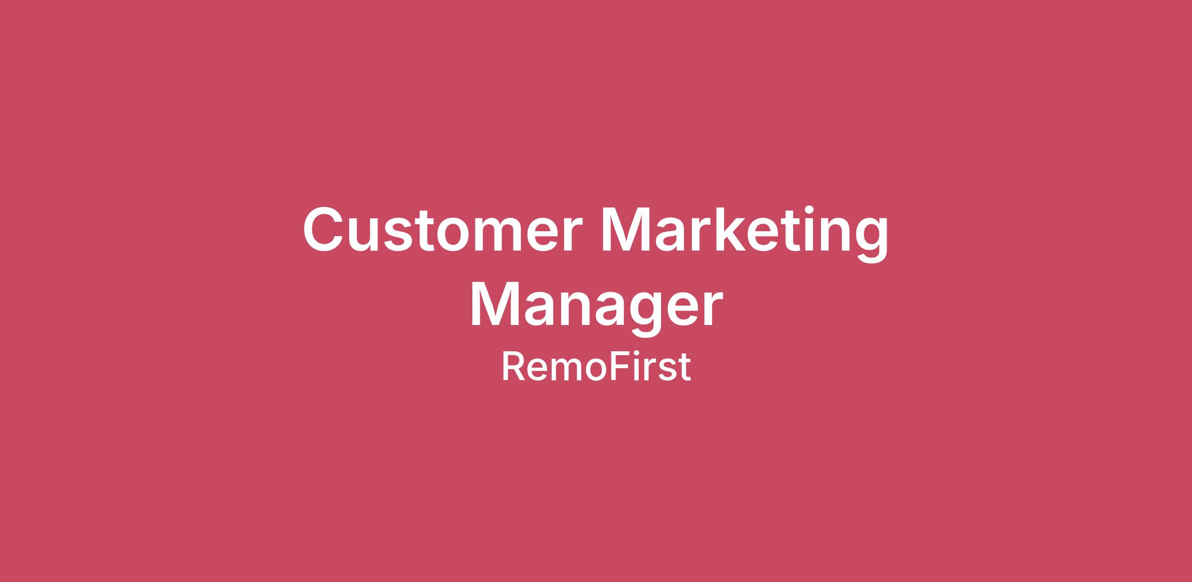 RemoFirst empowers employers to be free from geographical boundaries when accessing talent, allowing employees to pursue opportunities wherever they may exist. We are on a mission to be the FIRST to truly revolutionize the industry and be a generational company.Our platform offers a full-range people management tool, employee benefits like health insurance, and financial benefits, and enables clients to hire anyone from anywhere with one click. RemoFirst manages employees and contractors for Fortune 500 companies and the best startups worldwide.We are a small but strong team of 190+ people (and growing) hyper-focused on delivering a world-class platform and unparalleled service with our industry-leading partnerships. To help accelerate our growth and pace of delivery, we are looking for talented Marketers to help grow brand awareness and revenue for RemoFirst.We are looking for a results-driven Customer Marketing Manager to design and execute programs that turn our customers into champions — driving retention, engagement, and expansion.\nWhat you'll be doing:Build and execute a global customer marketing strategy focused on retention, advocacy, and upsell.Partner with Customer Success to identify expansion opportunities and create targeted campaigns to drive NRR.Partner with Customer Success to identify cross-sell opportunities and create targeted campaigns supporting the introduction of new RF products and services Partner closely with the CXG team to design, develop, and maintain customer- and employee-facing education materials related to country guides, mobility, benefits, and local regulatory requirements.Develop and maintain ongoing customer communications, including support with newsletters, product updates, and community announcements.Collaborate with the Product Marketing and Content teams to turn success stories into marketing assets (case studies, videos, testimonials).Launch customer advocacy programs to spotlight our biggest champions in press, events, and social.Measure and report the impact of customer marketing on engagement, retention, and expansion metrics.What you’ll need:3–6 years of experience in Customer or Lifecycle Marketing, ideally within B2B SaaS or HRTech.Strong understanding of customer journeys and NRR growth levers.Excellent communication skills and comfort working cross-functionally with CS, Sales, and Product.Experience running email campaigns, customer newsletters, and advocacy programs.Analytical mindset and familiarity with tools like HubSpot, Salesforce, or similar CRM systems.Why work at RemoFirst?Startup environment. RemoFirst is an early-stage start-up. You have a voice, and can influence and grow rapidly.Build & Scale From Scratch. Experience hyper-growth scale and help us build a great team of professionals worldwide that can help us achieve this ambitious vision.Work for a Market Leader. Scale a project that counts market-leading companies like Microsoft, Mastercard, and more as happy customers.Compensation and perks are great! Competitive compensation. Work equipment of your choice 100% remote work. Generous PTO policy. Days off are based on the home country’s local laws.Culture. We lead with respect, kindness, and the right to fail. We value hard, yet smart work. Diversity and inclusion are part of our DNA. As we grow and evolve, we welcome your input to help us define our culture further.\n