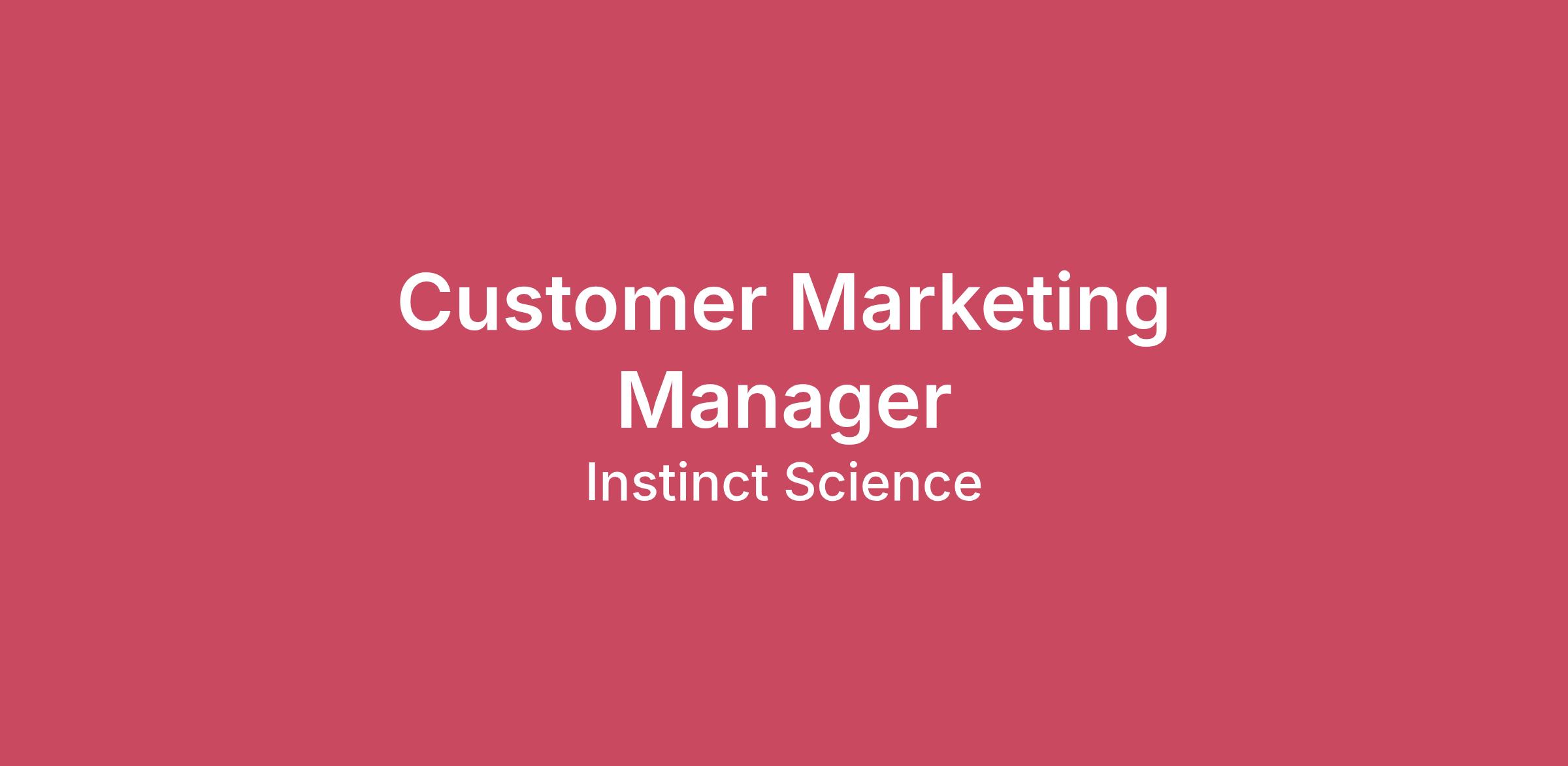 Meet Instinct đInstinct Science is at the forefront of veterinary innovation, comprised of world-class tools that have served our industry for decades: easy-to-use veterinary practice software (Instinct EMR), an essential resource for expanding your knowledge and skills (Clinicianâs Brief), clinical and pharmaceutical decision support (Standards of Care & Plumbâs), and an AI scribing platform (ScribbleVet). Combined, Instinct Science offers an ecosystem that veterinarians rely on for every aspect and stage of their careers.At Instinct Science, we believe in leading with compassion. Our team, our customers, and their patients and clients are the foundation of everything we do. Our culture is guided by our U.C.A.R.E. values, which serve as our daily compass: Urgency: We move with speed because our mission is too important to wait. Urgency means prioritizing high-impact work, making timely decisions, and being highly responsive to our customers, partners, and fellow employees.Customer First: Weâre our customersâ (and this professionâs) biggest fans. We put them first and obsess over helping them solve their challenges.Act with Grace, Not Teeth: We treat people with kindness, humor, humility, and assume good intent. We ask what we would want if we were in the other personâs shoes.Right Things, Right Reasons: We take ownership of all tasks, big and small. When we make mistakes, we own them, fix them quickly, and learn.Excellence is in our DNA: We hold ourselves and each other to high standards because our work is too important to do otherwise.A Sneak Peek of Your Role đ This job, and the team at Instinct, is remote.Instinct Science is looking for a motivated and customer-obsessed Customer Marketing Manager to own marketing programs that increase customer retention, product adoption, expansion (cross-sell & upsell), and advocacy. This role will design and execute scalable programs across the post-sale customer lifecycle â from onboarding and adoption to renewals and advocacy â using tactics such as customer onboarding journeys, retention email programs, product adoption campaigns, customer events, case study and reference programs, community-building, and partner-driven customer initiatives. The Customer Marketing Manager will work closely with Customer Success, Product, Sales, and Marketing to convert customer insight into measurable growth in customer lifetime value and satisfaction.What Youâll Do đ±âđ»Build and execute a customer lifecycle marketing strategy that improves retention, reduces churn, and drives expansion revenue.Develop quarterly and annual customer marketing plans aligned to product roadmaps, renewal cycles, and GTM priorities.Partner with Customer Success, Product, Product Marketing, Sales, and Campaign teams to map customer journeys and deliver adoption, renewal, and upsell programs.Design and run onboarding, adoption, renewal, and at-risk customer campaigns using HubSpot (or equivalent), including automated journeys and targeted outreach.Lead customer advocacy initiatives including case studies, testimonials, references, awards, and customer advisory programs.Plan and execute customer events and webinars (virtual and in-person), including user groups and a future user conference.Create customer-facing content such as playbooks, adoption guides, product tips, newsletters, and loyalty programs.Track and report on key performance metrics (renewal rate, churn, NRR, expansion ARR, adoption, NPS/CSAT, engagement), using testing and segmentation to optimize performance.Ensure customer communications align with brand voice, privacy/compliance standards, and documented lifecycle playbooks.Who You Are đ±âđ»Must Haves:3+ years of customer marketing, lifecycle marketing, or B2B marketing experience, preferably in a SaaS environment.Demonstrated track record of building and running lifecycle programs that move retention, adoption, and expansion metrics.Strong analytical skills and comfort with data â able to define success metrics, run cohort analyses, and report on program ROI.Hands-on experience with marketing automation platforms (HubSpot, Marketo, or similar), CRM systems, and analytics tools.Exceptional written and verbal communication skills; ability to synthesize customer insight into compelling programs and assets.Collaborative mindset with proven ability to work cross-functionally (Customer Success, Product, Sales).Project management skills and experience managing multiple concurrent programs and vendor relationships.Creative thinker who can combine strategy with an operational bias to deliver results.Preferred:Experience in the veterinary or healthcare technology sectors is a plus.Experience building customer advocacy and reference programs or running customer events/user conferences.Familiarity with renewal and expansion sales motions in mid-market and enterprise accounts.How Instinct will Care about YOU đWe offer a supportive and caring work environment.We are transparent, open, honest, and empathic, both internally and externally.We pay our team well. We offer medical, dental and vision benefits and 401K with match.We give our team owner-like flexibility over work and time-off, including time to innovate and Flow State Fridays.We offer a generous stipend that can be used for almost anything to allow you to bring your best self to work.We provide all-expense-paid time throughout the year together, including at our annual retreat.The compensation range for this role is $90,000 - $115,000. Actual compensation will be determined through a variety of factors including the candidate's skills, qualifications, and experience.Instinct is an equal opportunity employer committed to equality and providing a pleasant work environment free from harassment or discrimination in any form. All employees will be treated equally without regard to race, color, religion, sex, sexual orientation, gender identity, family or parental status, national origin, ancestry, vet