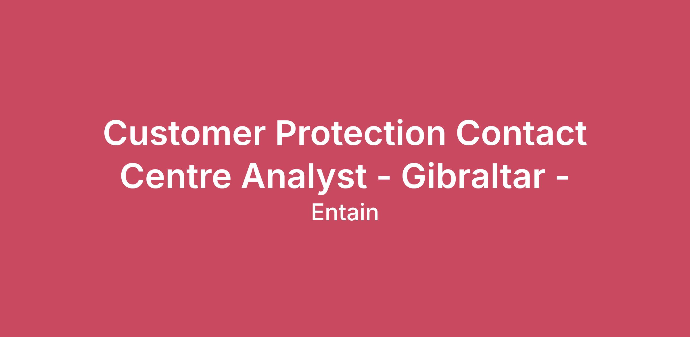 Customer Protection Contact Centre Analyst - Gibraltar -
