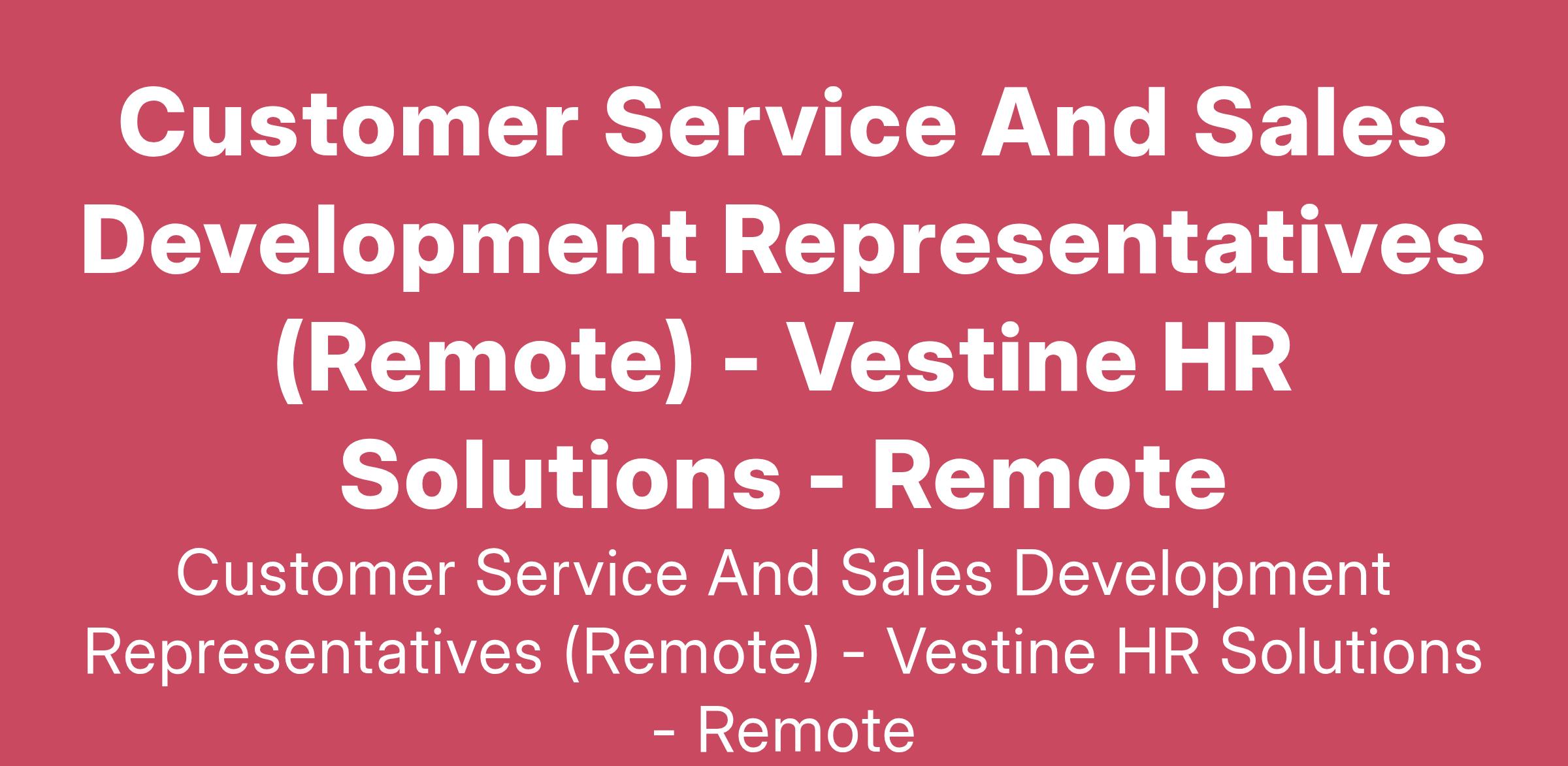 We are seeking qualified customer service and sales development representatives to help sell services that customers rely on. The candidate will have a strong understanding of customer service, sales processes and excel at generating leads, building relationships, and closing deals