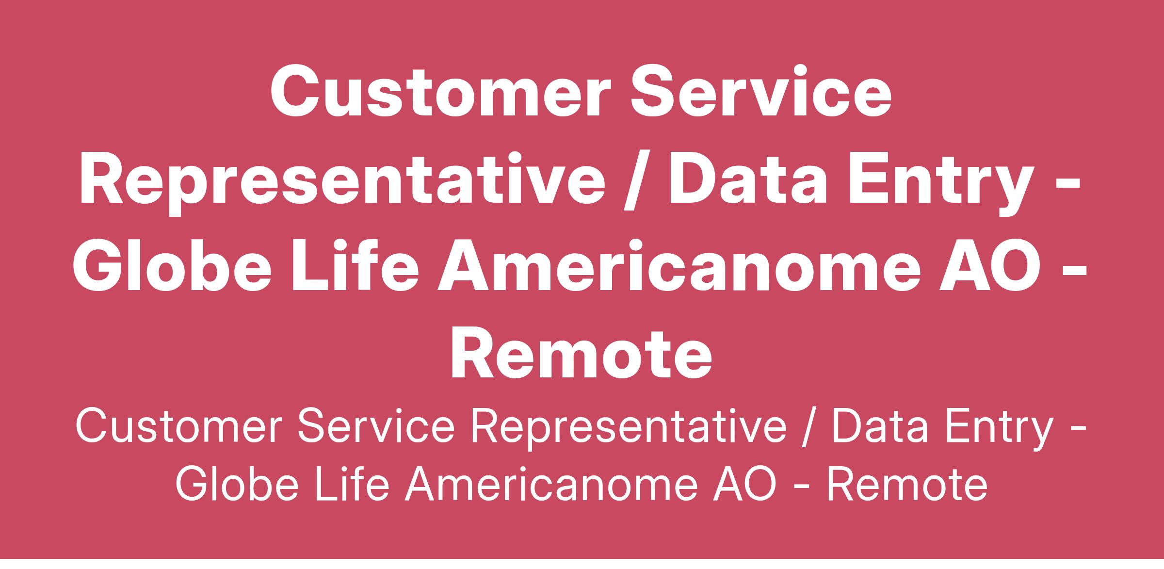 GLOBE LIFE AO is a leading company dedicated to providing high-quality products/services to our customers. We are committed to delivering exceptional customer service and are looking for a motivated and personable Customer Service Representative to join our team.