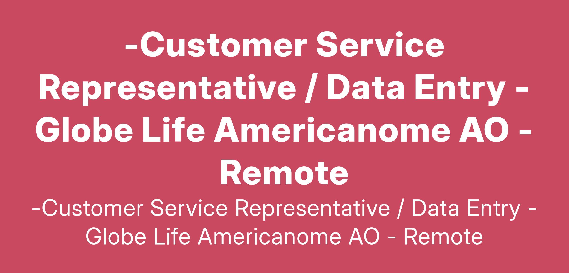 GLOBE LIFE AO is a leading company dedicated to providing high-quality products/services to our customers. We are committed to delivering exceptional customer service and are looking for a motivated and personable Customer Service Representative to join our team.