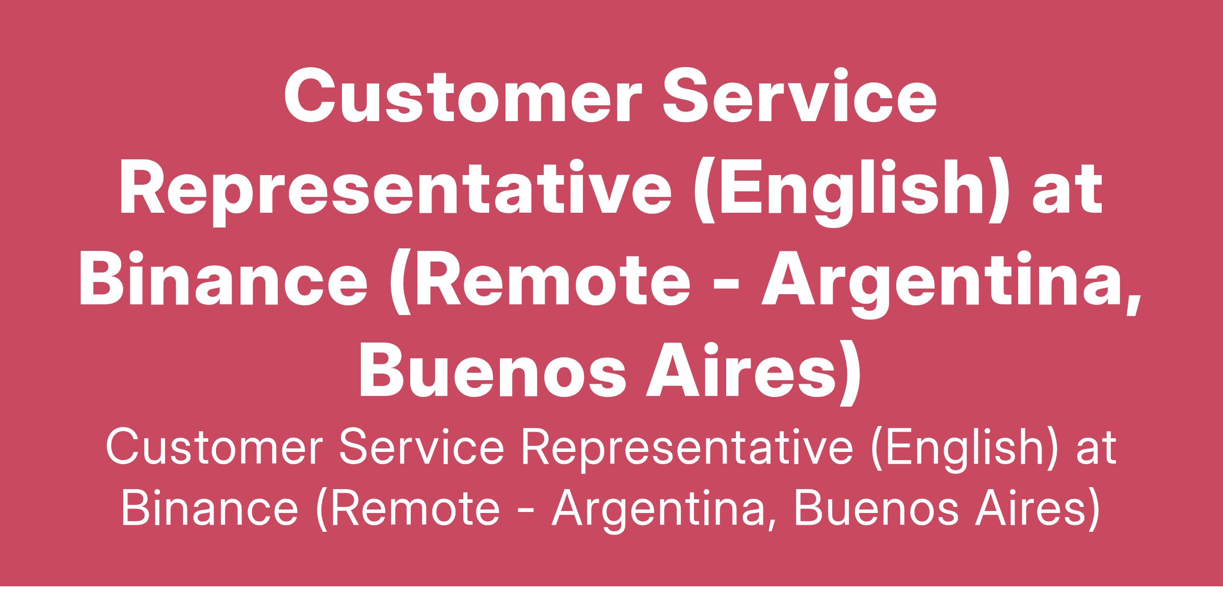 Customer Service Representative (English) at Binance (Remote - Argentina, Buenos Aires)