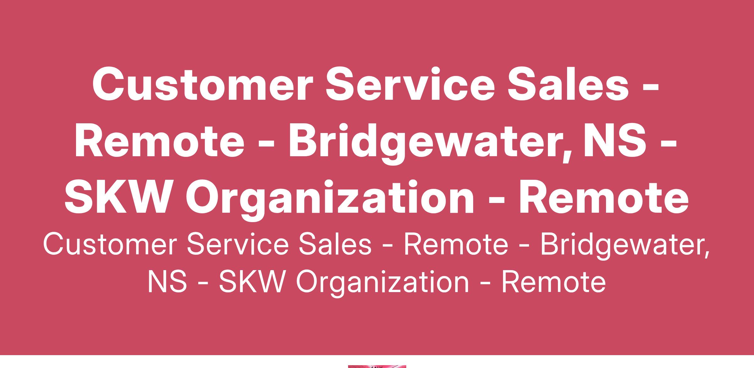Customer Service Sales - Remote - Bridgewater, NS - SKW Organization - Remote