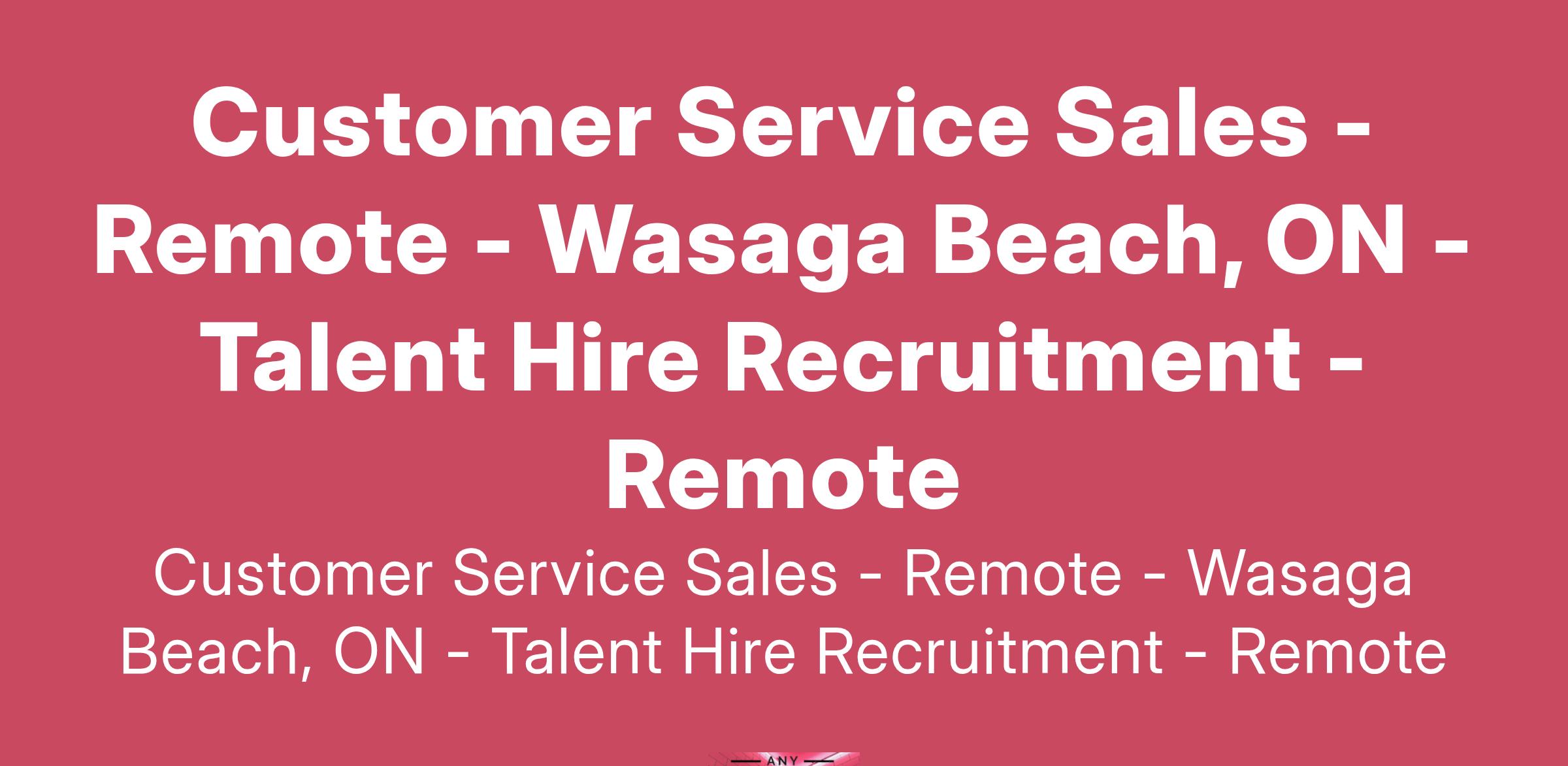 Customer Service Sales - Remote - Wasaga Beach, ON - Talent Hire Recruitment - Remote