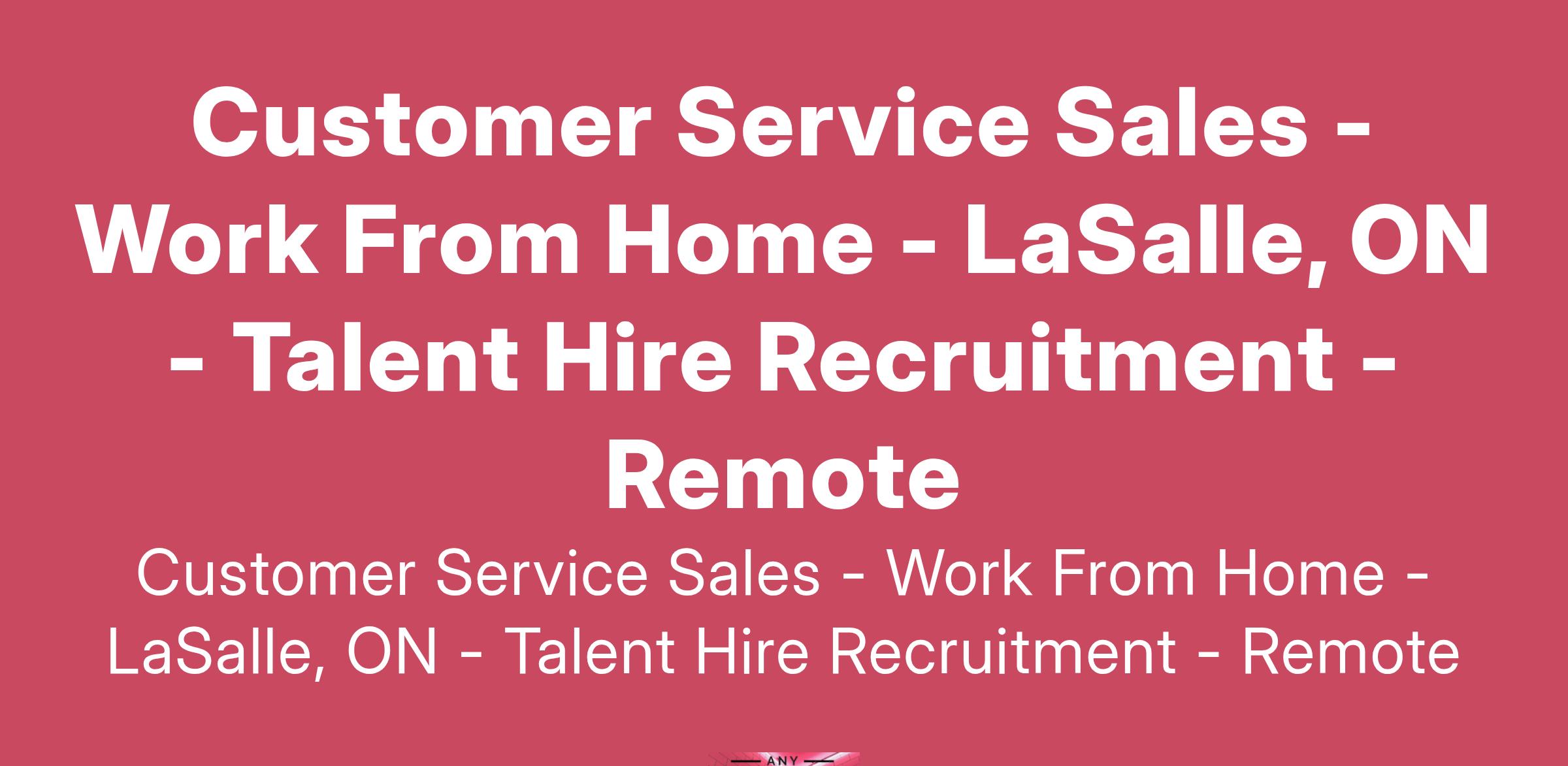 Customer Service Sales - Work From Home - LaSalle, ON - Talent Hire Recruitment - Remote