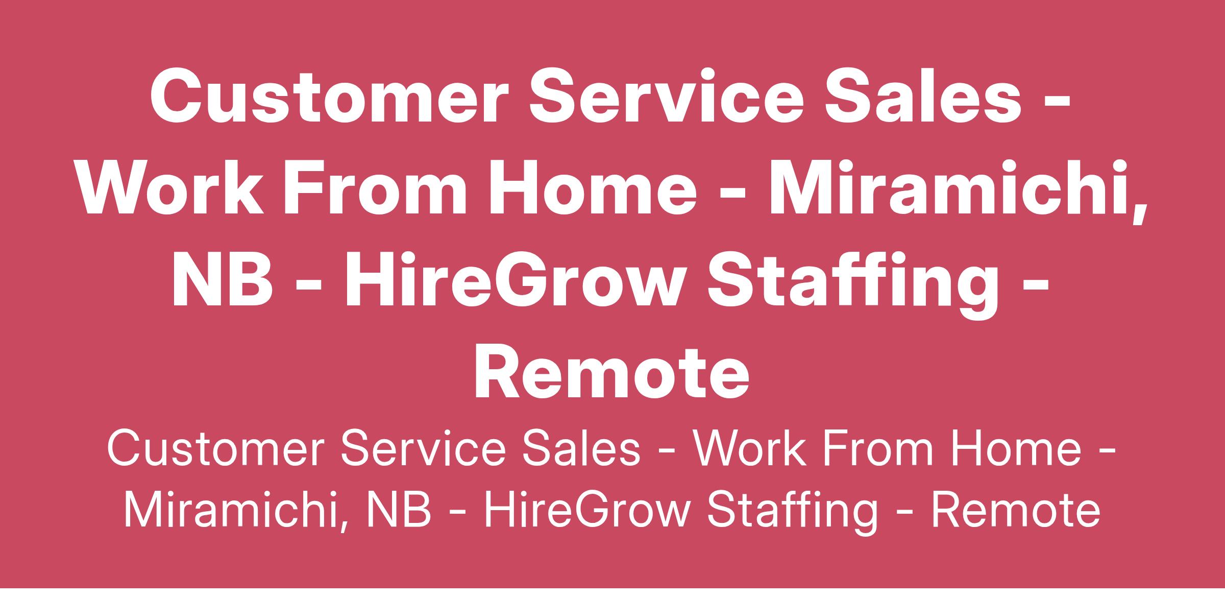 Customer Service Sales - Work From Home - Miramichi, NB - HireGrow Staffing - Remote