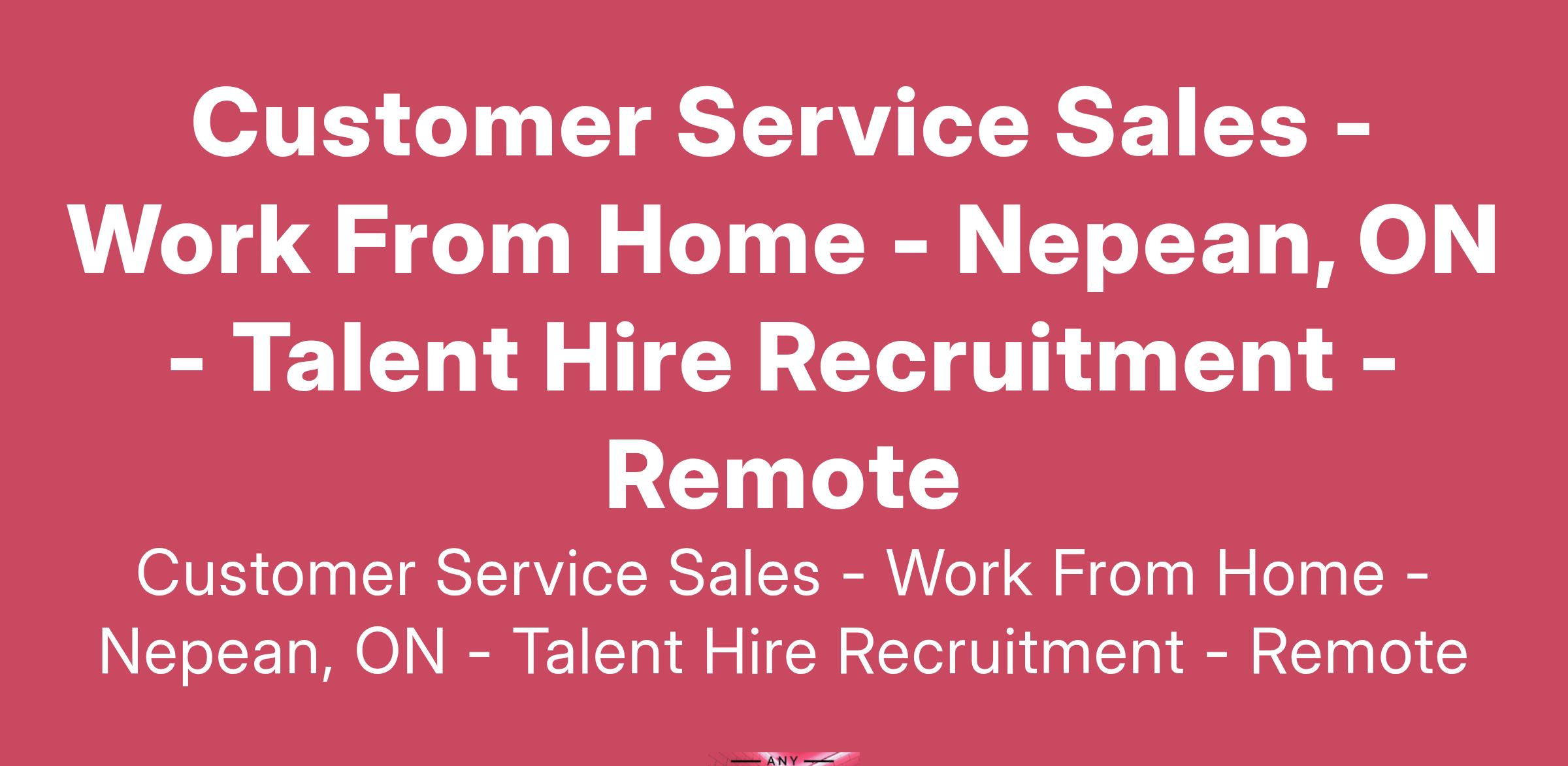 Customer Service Sales - Work From Home - Nepean, ON - Talent Hire Recruitment - Remote