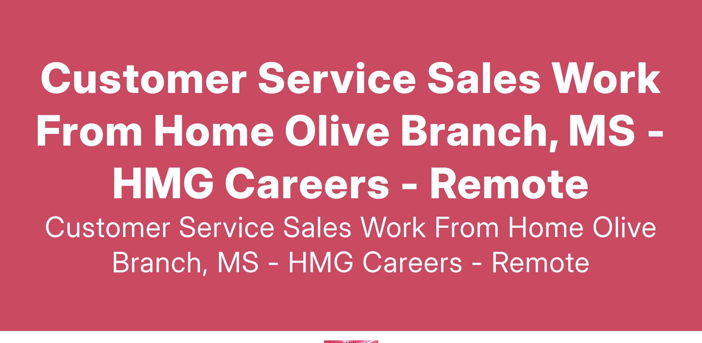 Customer Service Sales Work From Home Olive Branch, MS - HMG Careers - Remote