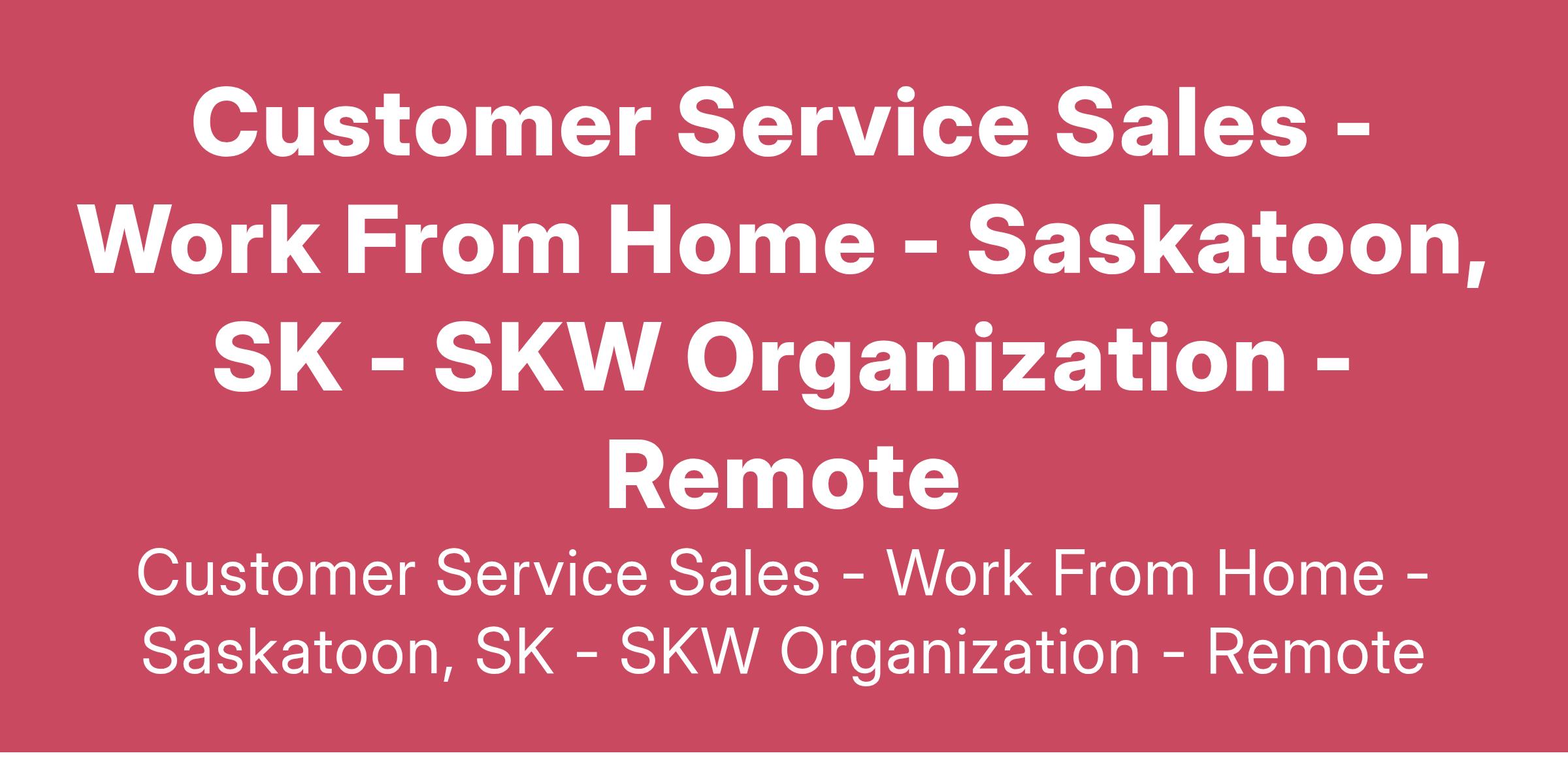 Customer Service Sales - Work From Home - Saskatoon, SK - SKW Organization - Remote