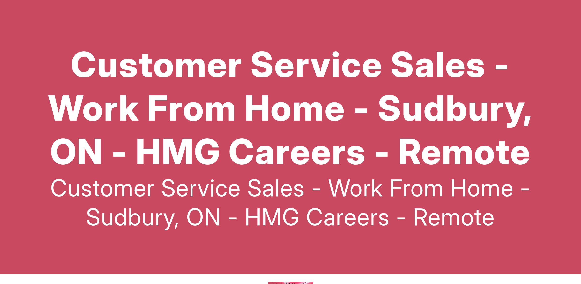 Customer Service Sales - Work From Home - Sudbury, ON - HMG Careers - Remote
