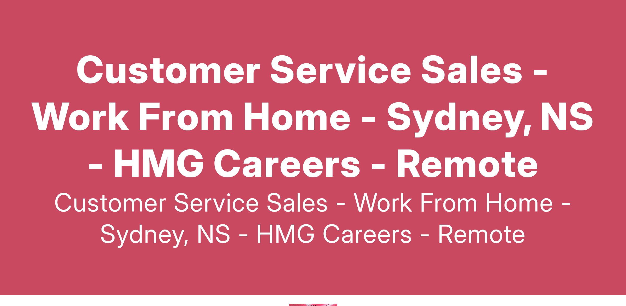 Customer Service Sales - Work From Home - Sydney, NS - HMG Careers - Remote