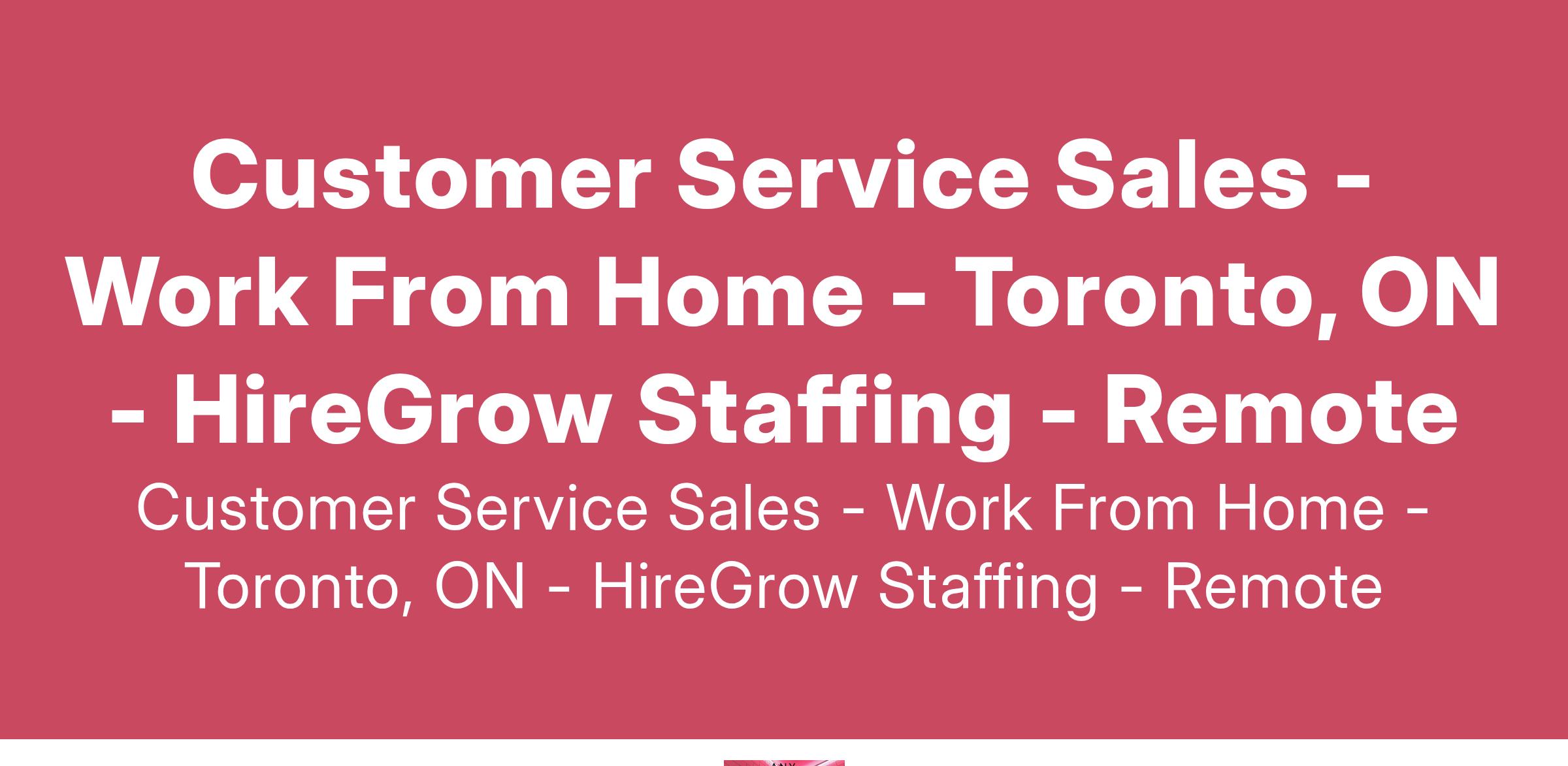 Customer Service Sales - Work From Home - Toronto, ON - HireGrow Staffing - Remote