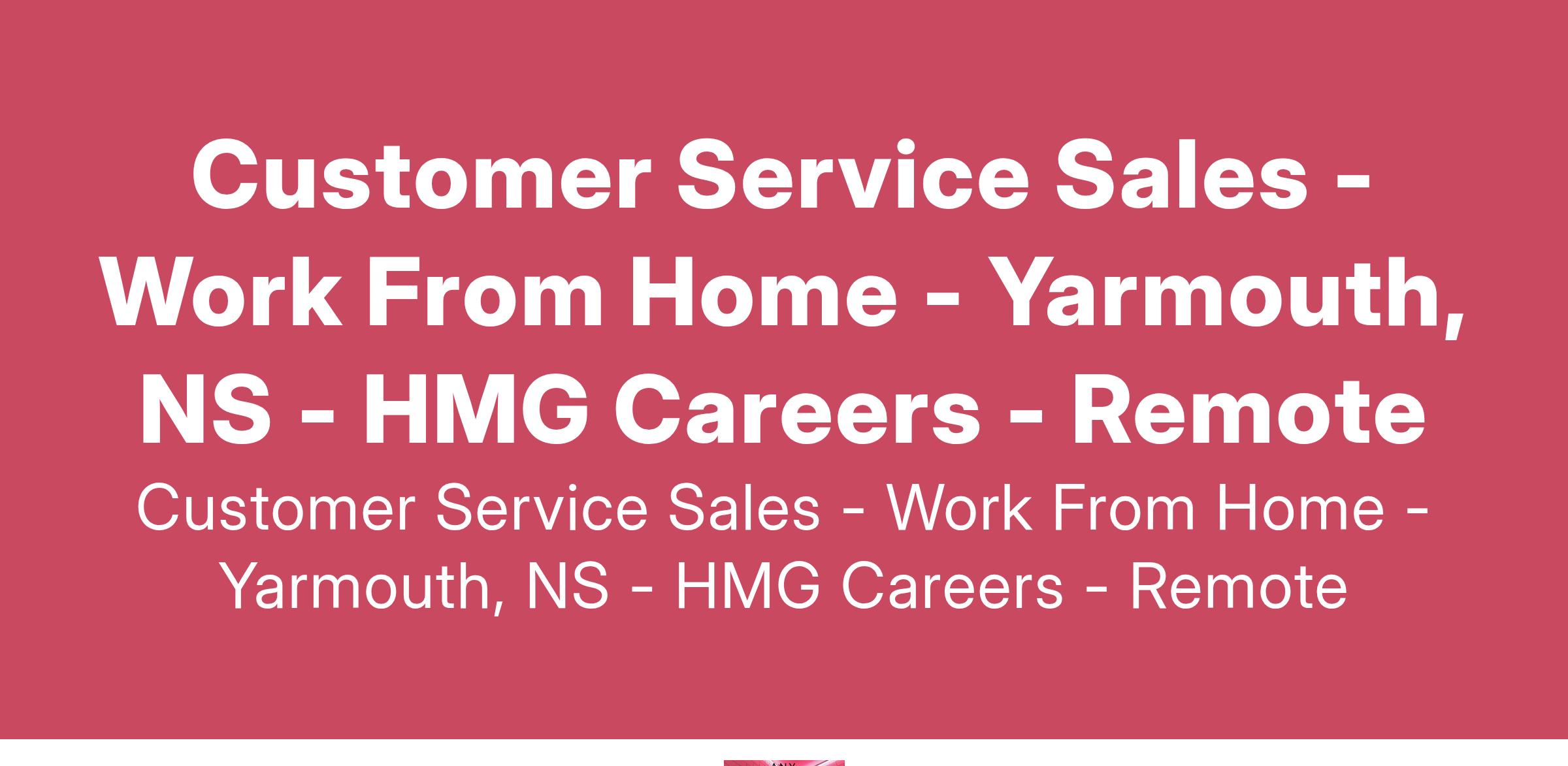 Customer Service Sales - Work From Home - Yarmouth, NS - HMG Careers - Remote