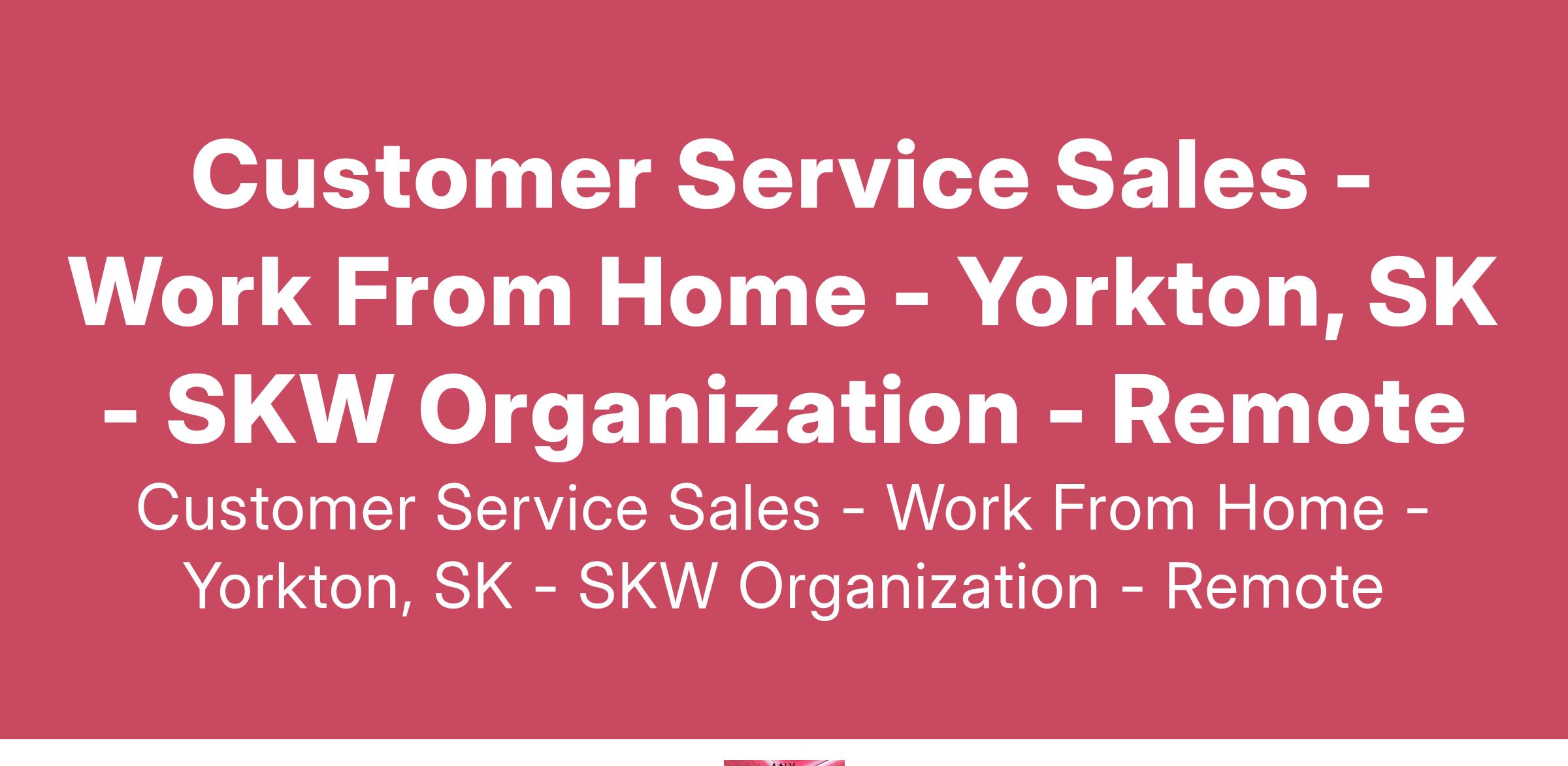 Customer Service Sales - Work From Home - Yorkton, SK - SKW Organization - Remote