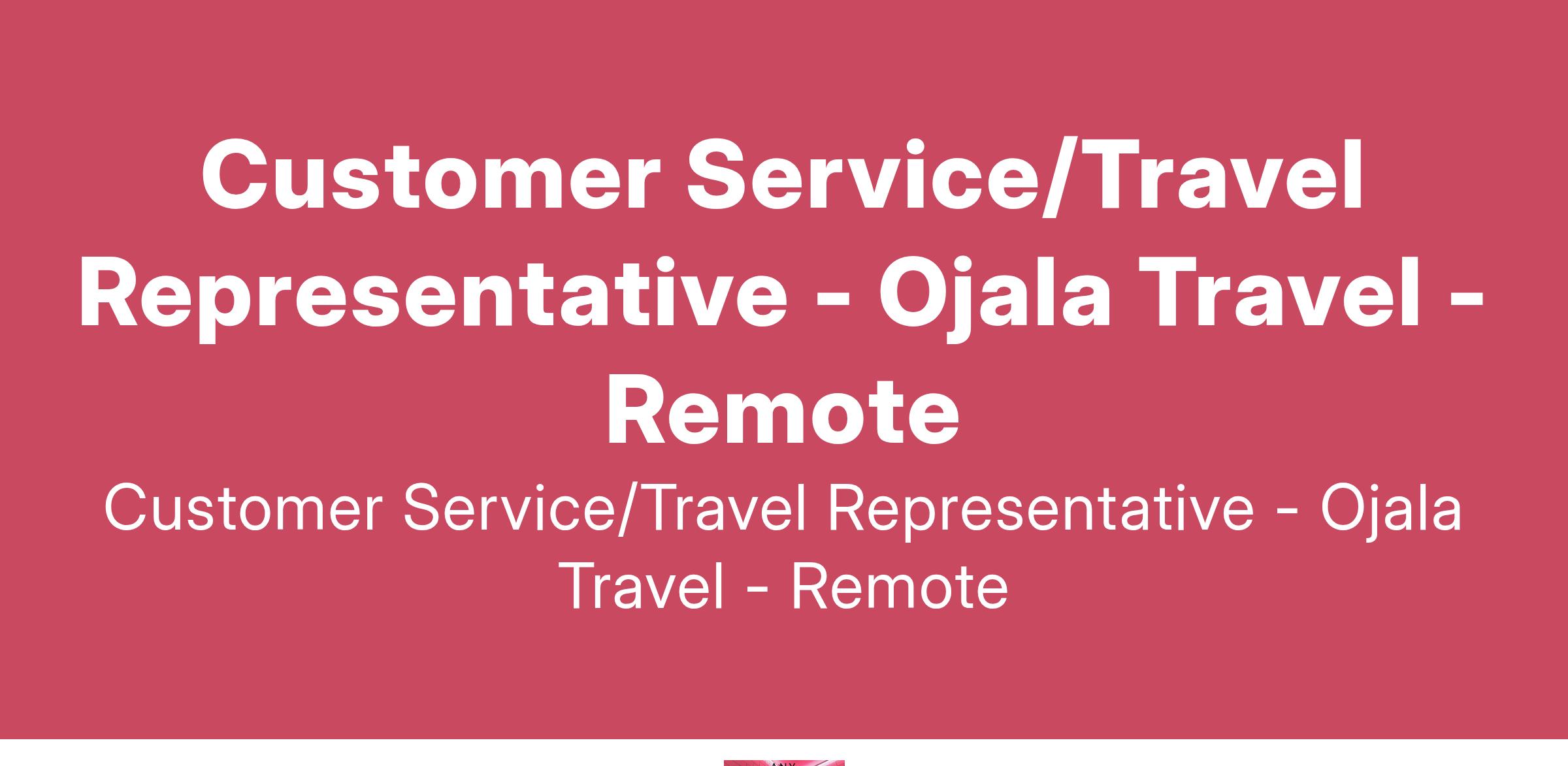 We are looking for a friendly, proactive Customer Service/Travel Representative to provide exceptional support to travelers, helping them plan, book, and manage their trips. In this role, you will be the key point of contact for clients, addressing inquiries, resolving issues, and ensuring smooth and memorable travel experiences from start to finish.