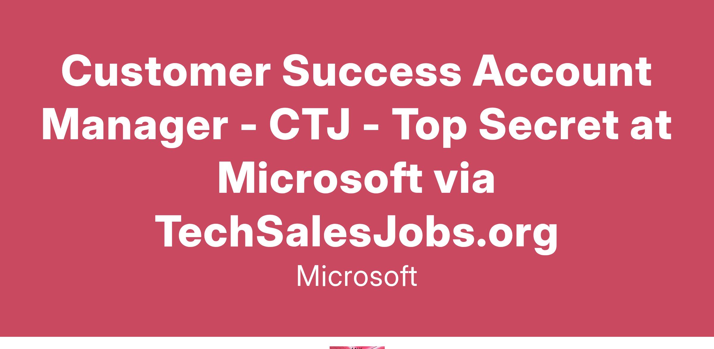 We are looking to hire a Customer Success Account Manager to join Microsoft Federal.