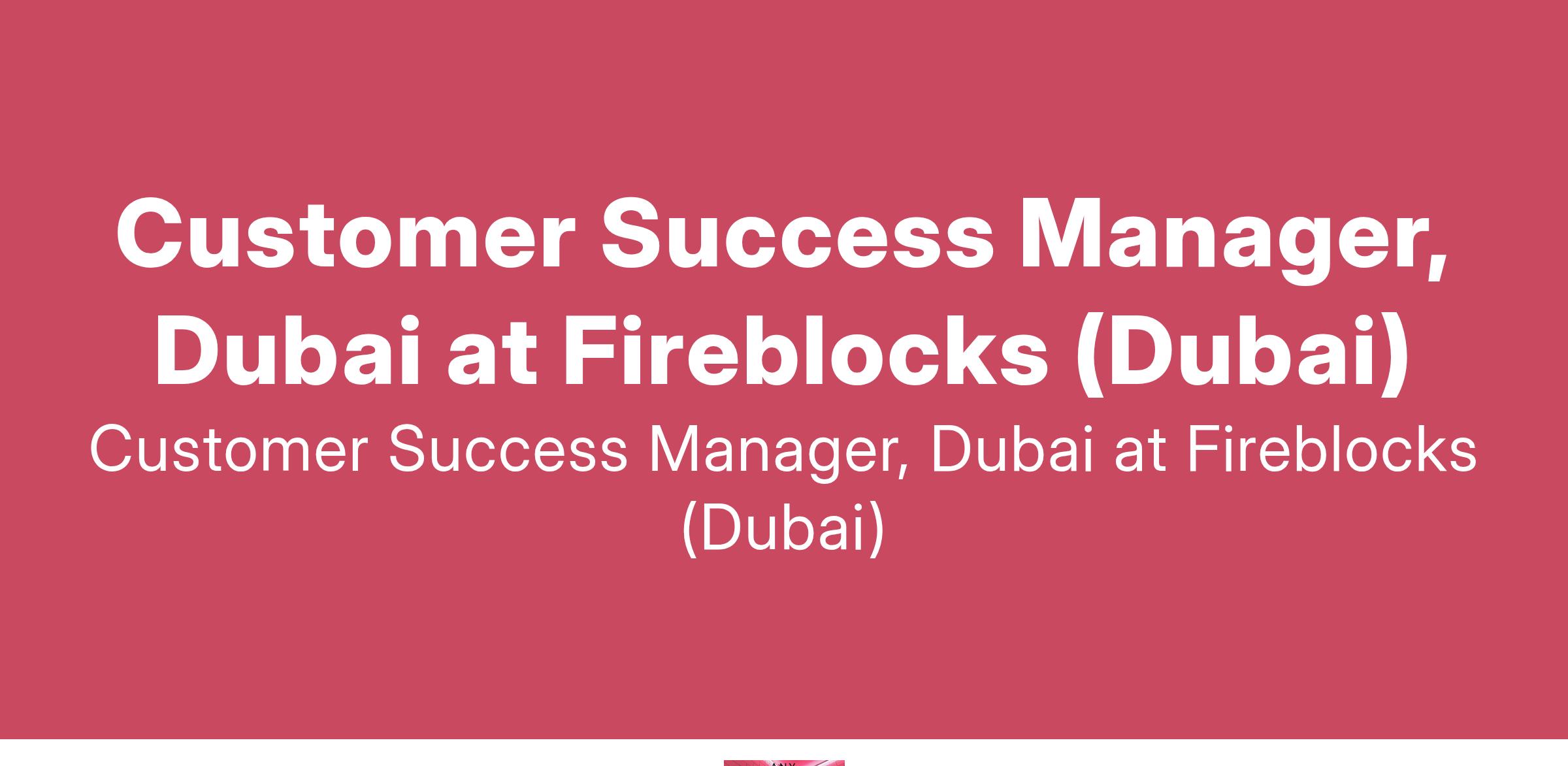 Customer Success Manager, Dubai at Fireblocks (Dubai)