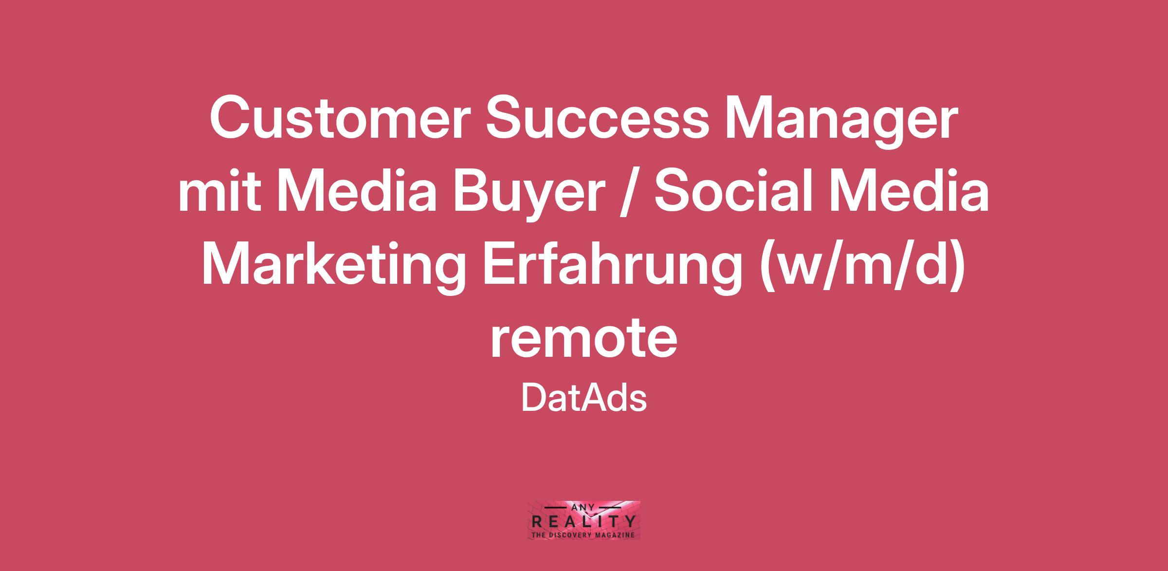 Customer Success Manager mit Media Buyer / Social Media Marketing Erfahrung (w/m/d) remote