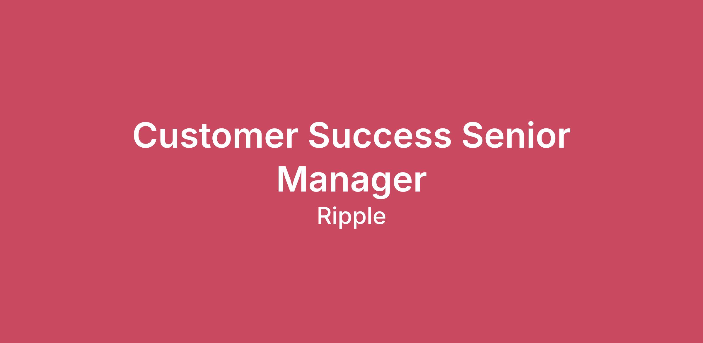 The Customer Success Senior Manager plays a key role within in Ripple, driving revenue and product adoption across Ripple's customer base. The CSSM will focus on deepening customer relationships by scaling payments volume, implementing our custody solution and identifying cross selling opportunities for Ripple's other enterprise grade products.