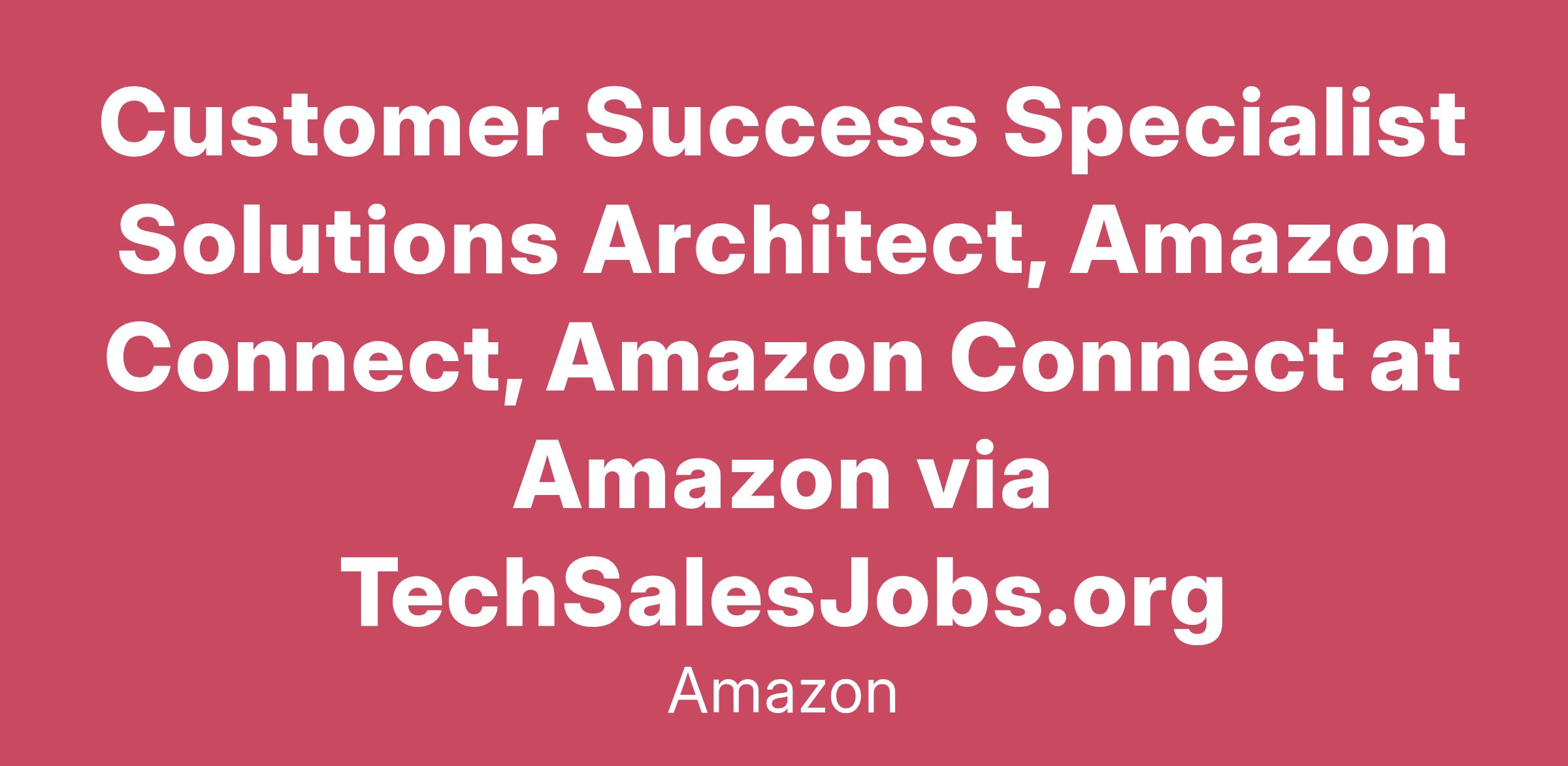 Customer Success Specialist Solutions Architect, Amazon Connect, Amazon Connect at Amazon via TechSalesJobs.org