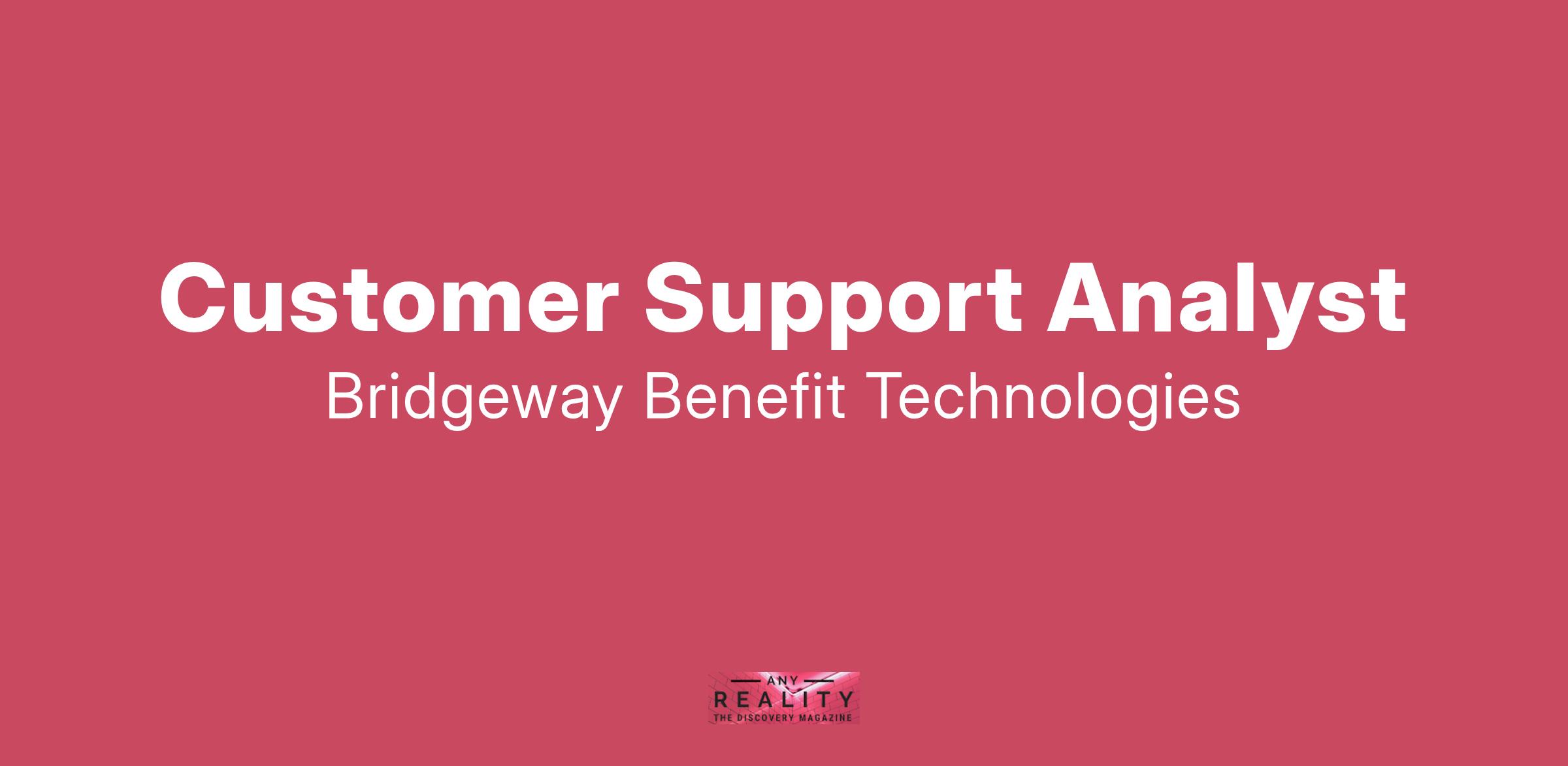 Bridgeway Benefit Technologies is hiring a Customer Support Analyst to help grow our Customer Success organization and support our Bridgeway product end-users, through serving as an internal advocate and customer liaison and delivering the highest level of service to our customers.