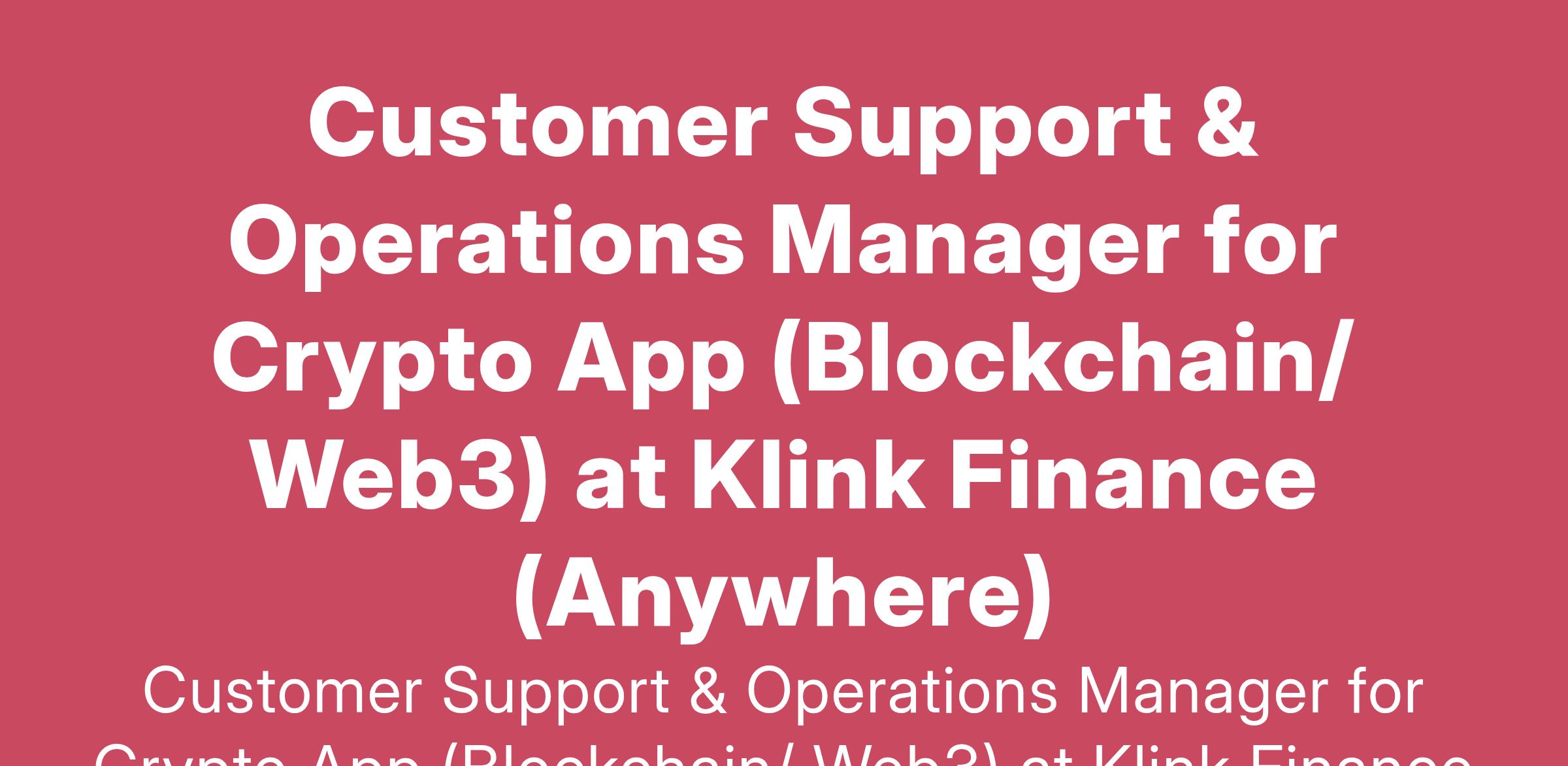 Customer Support & Operations Manager for Crypto App (Blockchain/ Web3) at Klink Finance (Anywhere)