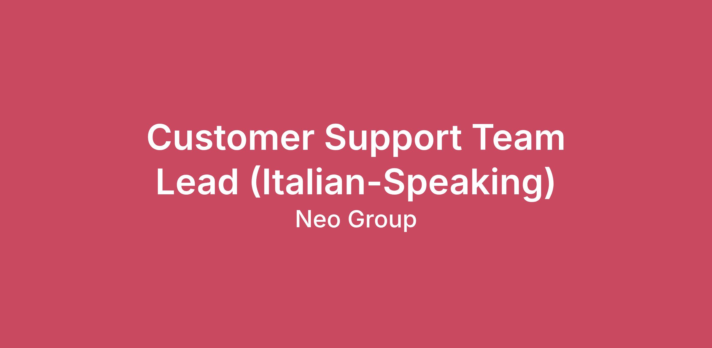 Customer Support Team Lead (Italian-Speaking)