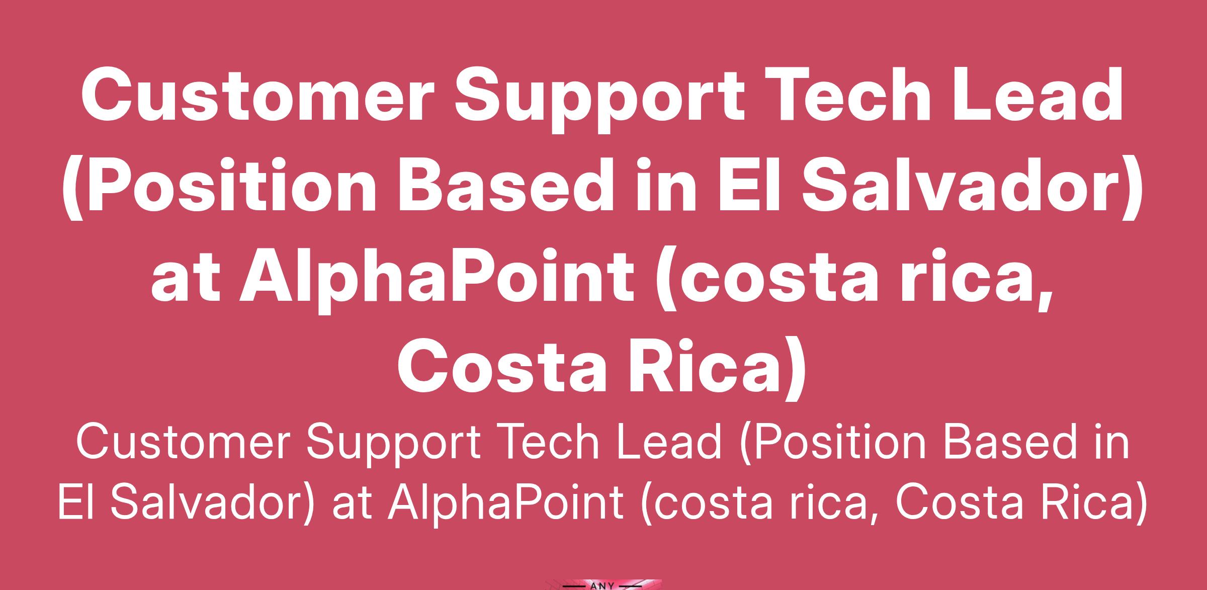 Customer Support Tech Lead (Position Based in El Salvador) at AlphaPoint (costa rica, Costa Rica)