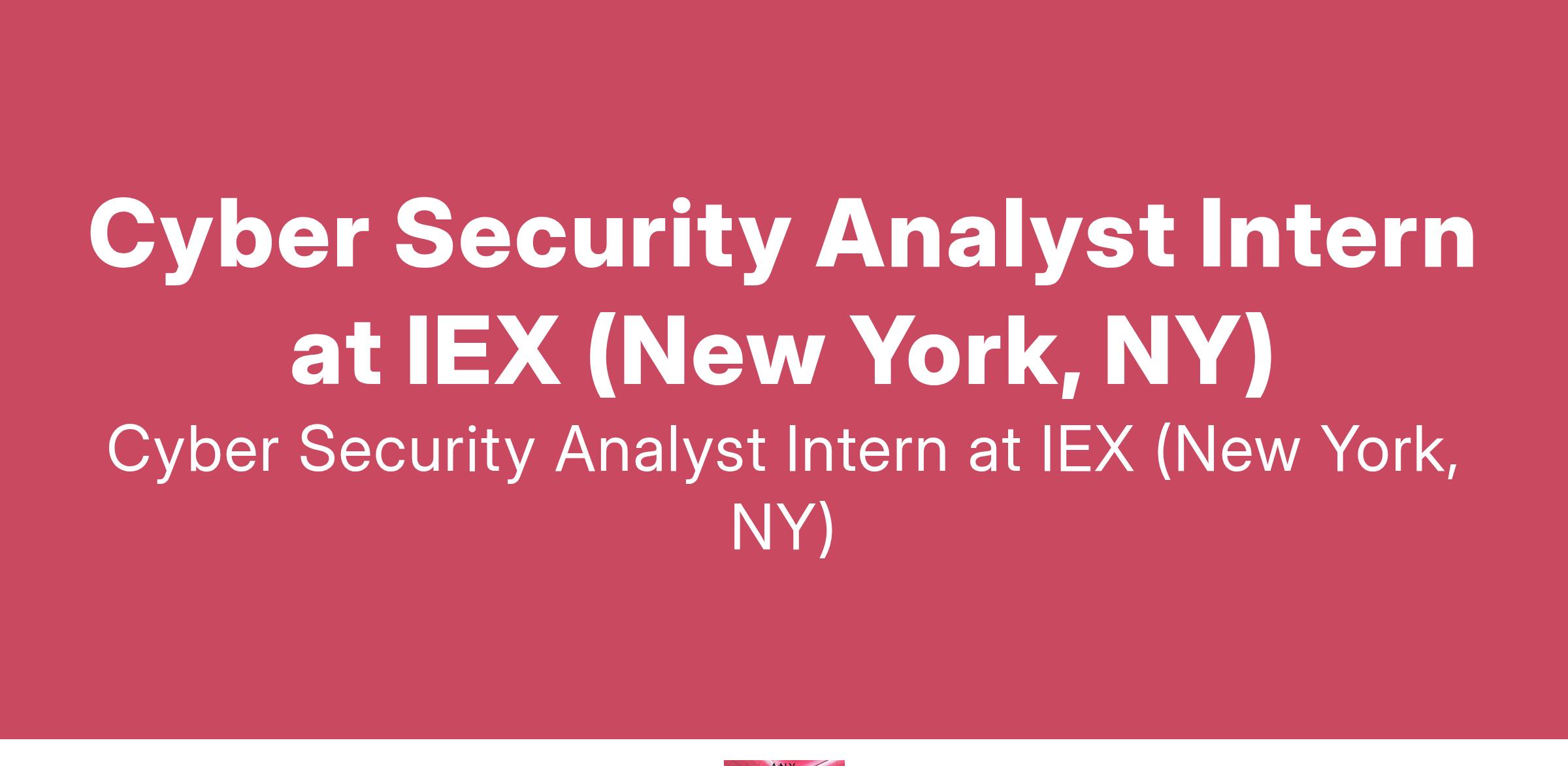 Cyber Security Analyst Intern at IEX (New York, NY)