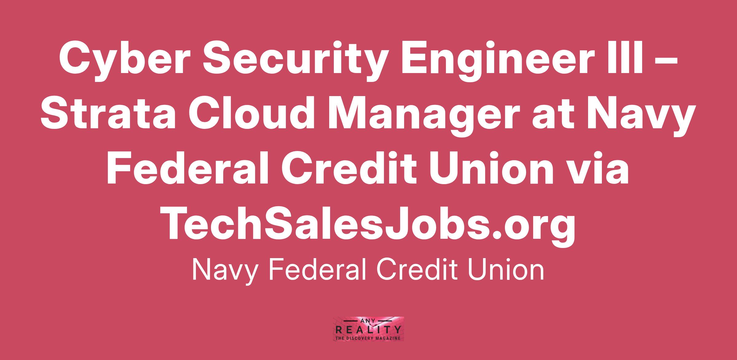 Cyber Security Engineer III – Strata Cloud Manager at Navy Federal Credit Union via TechSalesJobs.org