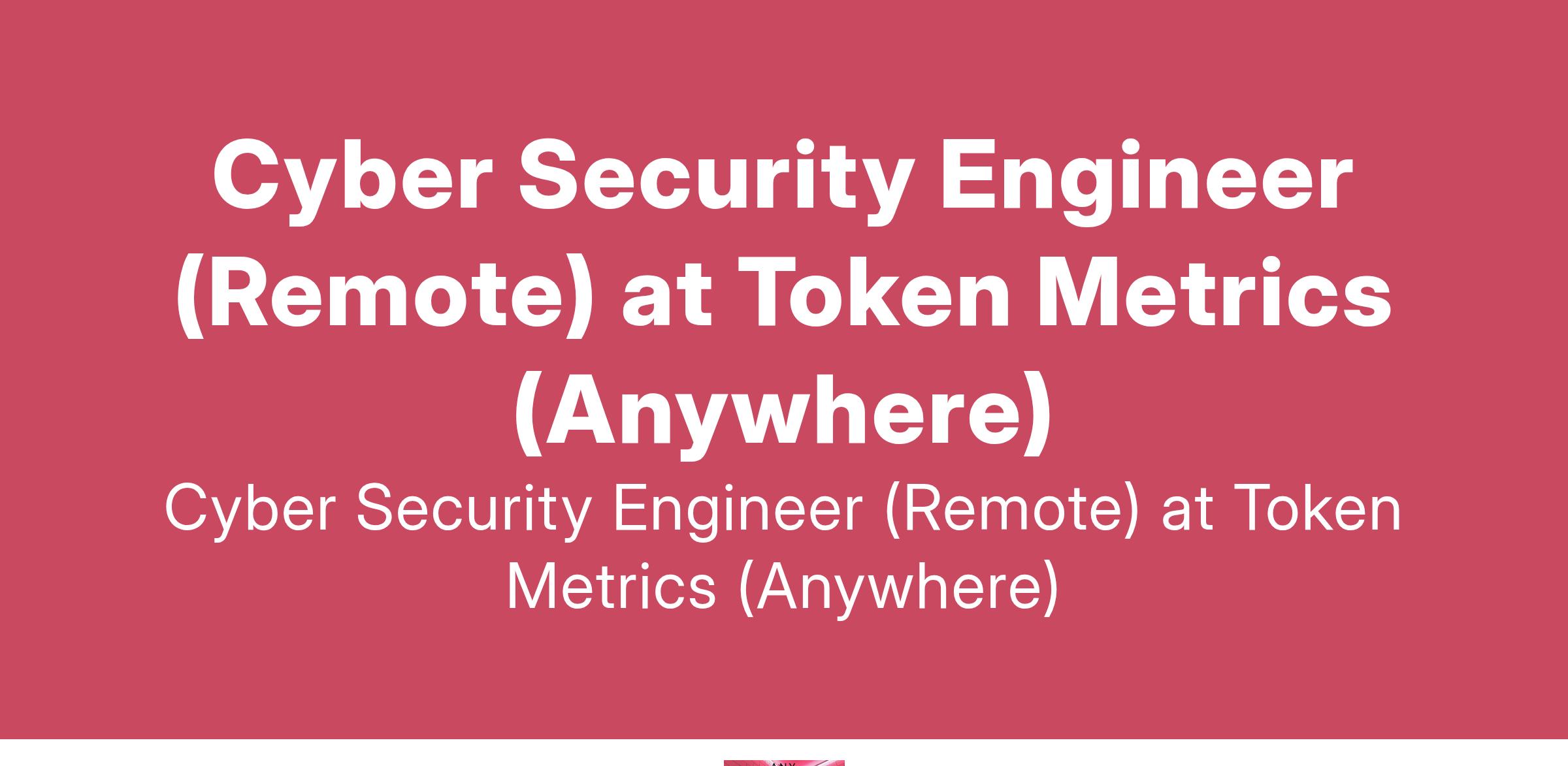 Cyber Security Engineer (Remote) at Token Metrics (Anywhere)