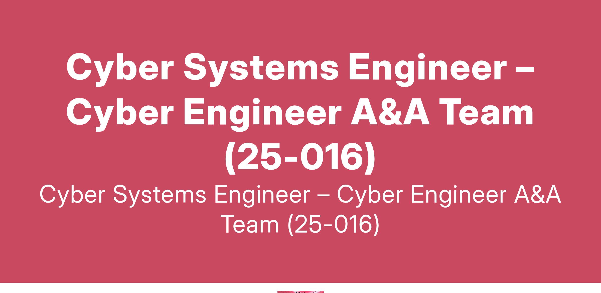 Cyber Systems Engineer – Cyber Engineer A&A Team (25-016)
