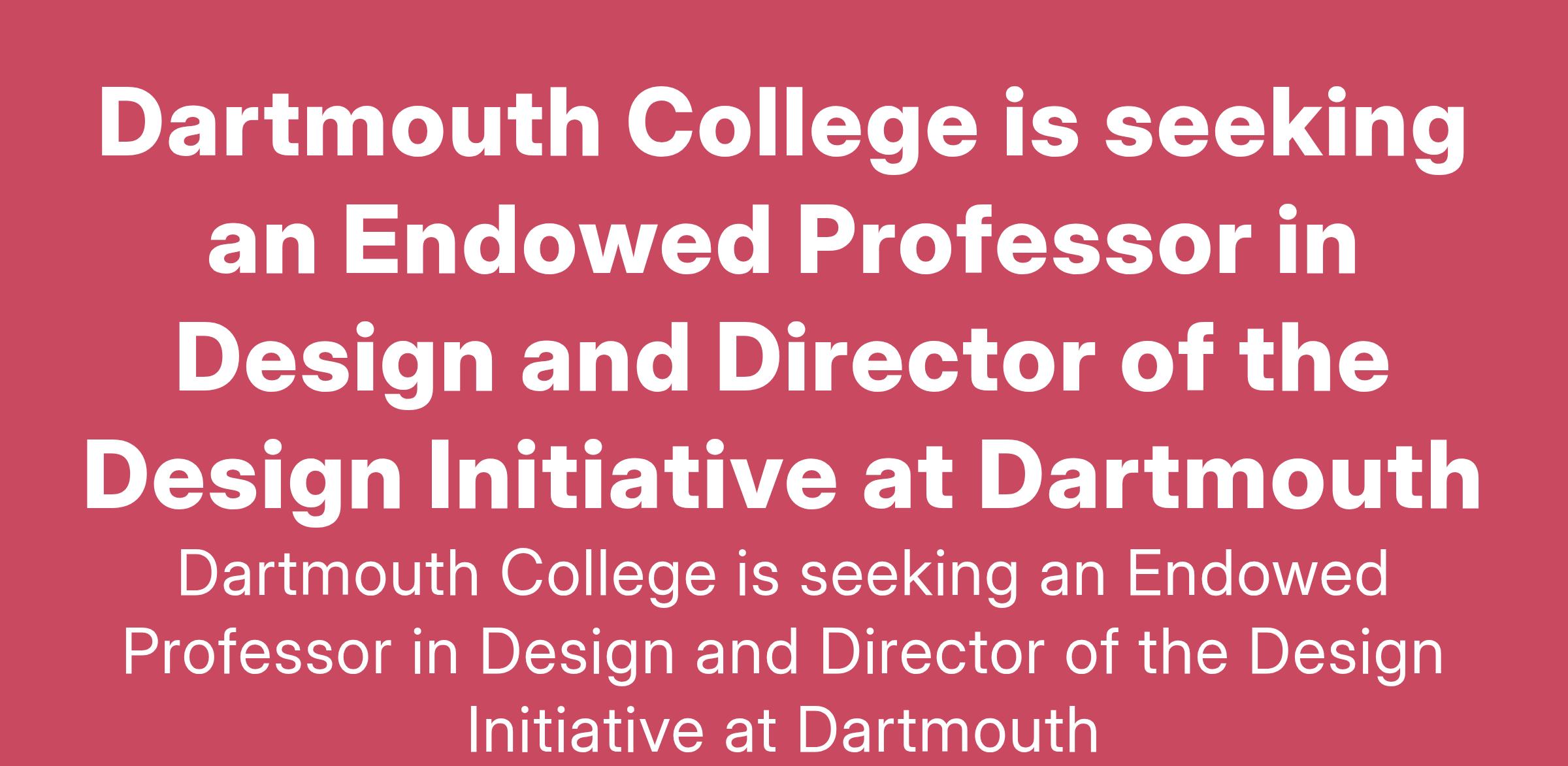 Dartmouth College is seeking an Endowed Professor in Design and Director of the Design Initiative at Dartmouth
