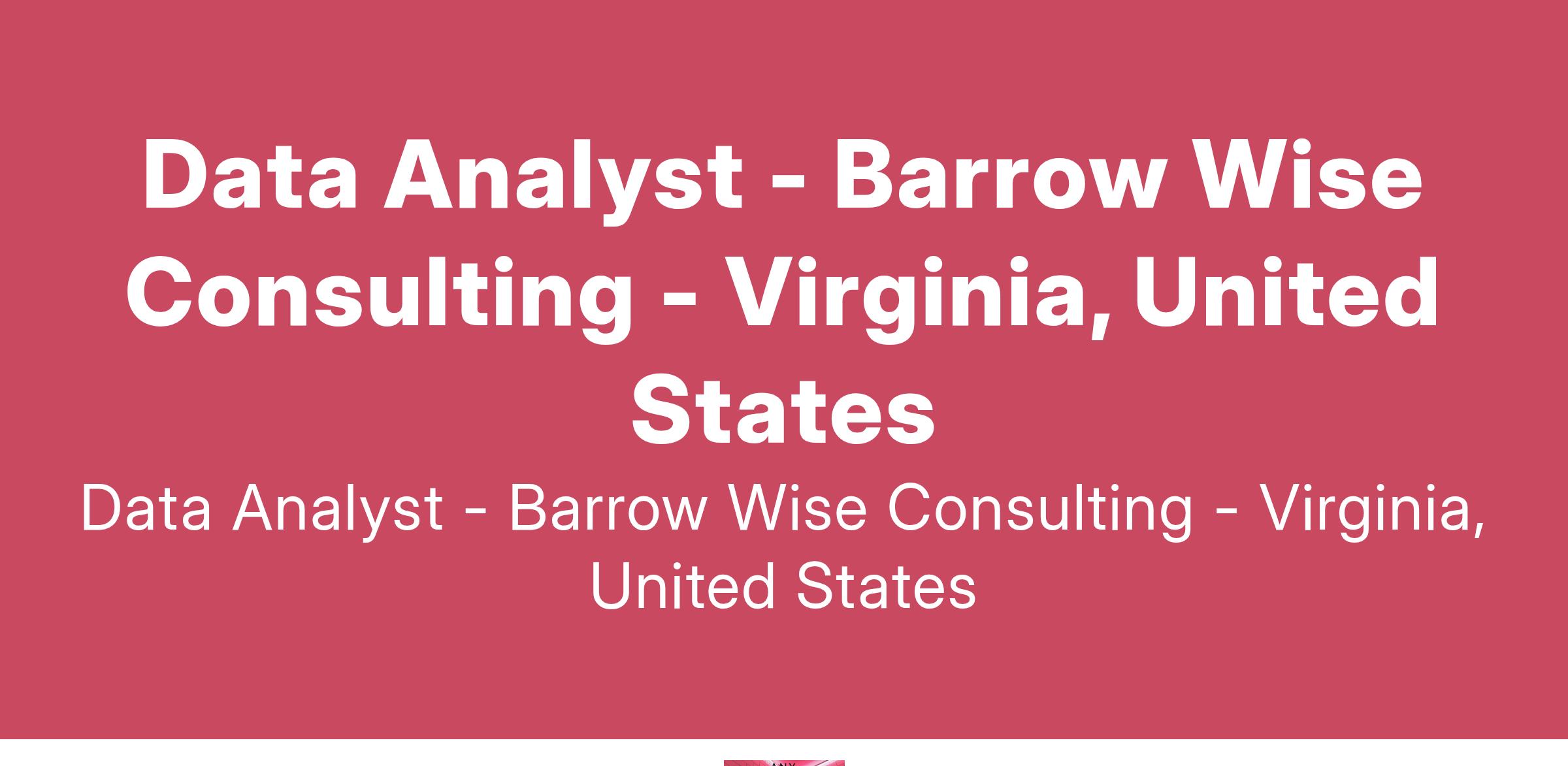 Data Analyst - Barrow Wise Consulting - Virginia, United States