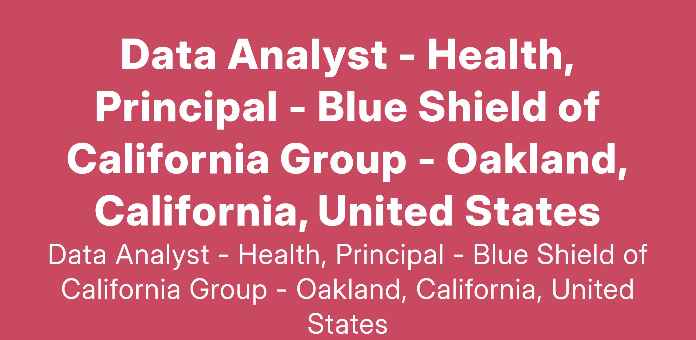 The Clinical Quality team is accountable for the quality ratings of the organization, for improving preventive care outcomes for Blue Shield of California’s Commercial members and for managing financial risks associated with Quality performance. The Health Data Analyst for Clinical Quality (Principal) will report to the Director of Clinical Quality. In this role you will drive ratings achievement strategy, build outcomes forecasts for quality interventions and regional support models, and develop the measurement strategy for five Commercial lines of Business. This includes accountability for data models, analysis and recommendations based on the National Committee for Quality Assurance (NCQA) STAR ratings, HEDIS and CAHPS measures. This role also develops predictive modeling techniques for preventive care patterns.