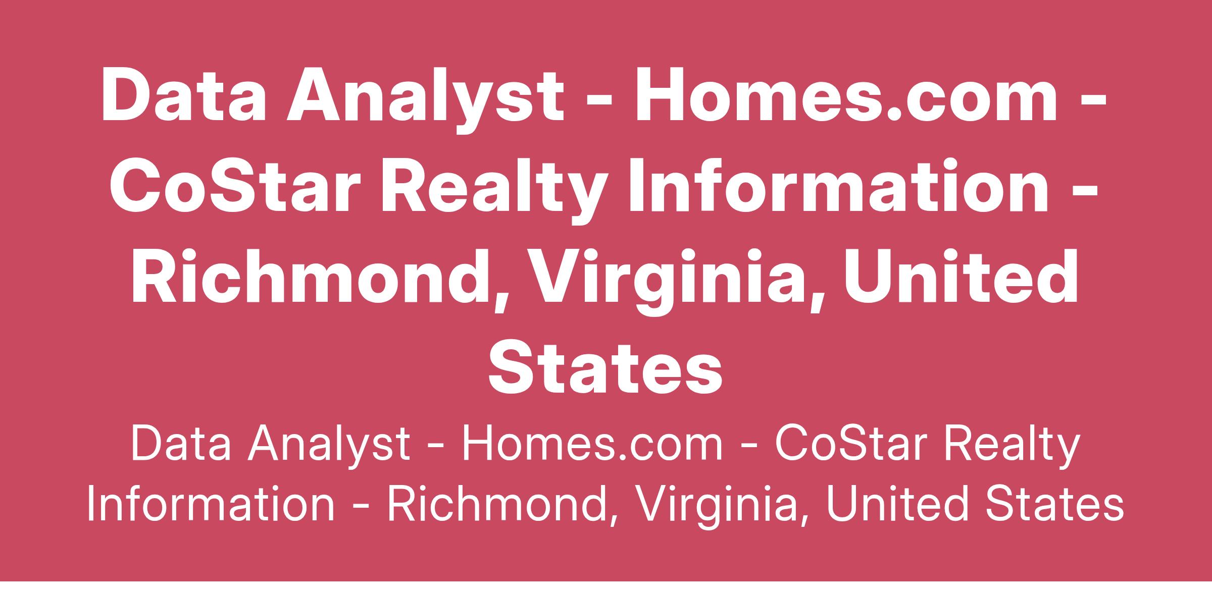CoStar Group is an Equal Employment Opportunity Employer; we maintain a drug-free workplace and perform pre-employment substance abuse testing