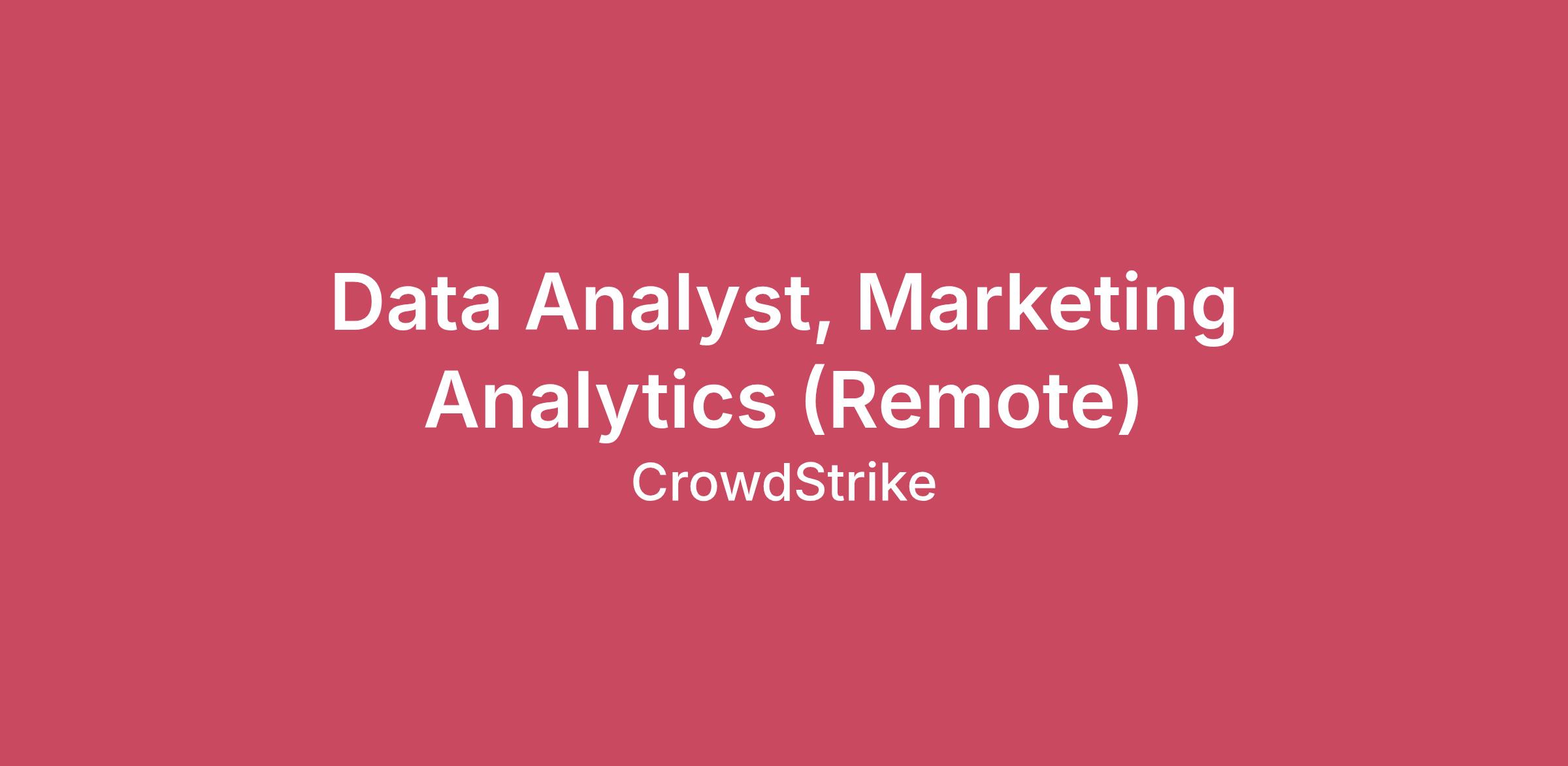 As a global leader in cybersecurity, CrowdStrike protects the people, processes and technologies that drive modern organizations. Since 2011, our mission hasn’t changed — we’re here to stop breaches, and we’ve redefined modern security with the world’s most advanced AI-native platform. Our customers span all industries, and they count on CrowdStrike to keep their businesses running, their communities safe and their lives moving forward. We’re also a mission-driven company. We cultivate a culture that gives every CrowdStriker both the flexibility and autonomy to own their careers. We’re always looking to add talented CrowdStrikers to the team who have limitless passion, a relentless focus on innovation and a fanatical commitment to our customers, our community and each other. Ready to join a mission that matters? The future of cybersecurity starts with you.About the Role:CrowdStrike is looking for a Data Analyst to join our Marketing Analytics team. As a Data Analyst, you will be responsible for gathering, transforming, and analyzing data, maintaining data quality, creating reports and dashboards, and providing insights to key stakeholders to help them make informed business decisions. You will work closely with leadership to identify business requirements and data needs. Your role will be critical in driving strategic decision-making and supporting operational efficiencies. You will be instrumental in establishing and maintaining consistent data definitions and standardized reporting methodologies across all GTM functions, ensuring alignment and consistency throughout the organization.Your duties will generally vary based on the current business need. Initial areas of focus may include but are not limited to: build and maintain critical dashboards, ensure 100% data accuracy, become the subject matter expert for Marketing data, and drive global consistency. What You'll Do: Partner with Marketing operations in implementing standardized GTM processes and policies to optimize KPI tracking and business metrics. Develop and maintain datasets, dashboards, reports, and queries with the highest level of data quality. Collaborate with cross-functional teams to gather data requirements and create data visualizations that help drive business decisions.Partner with CrowdStrike Data Engineering team to ingest data into the Datalake to support reporting and analysis needs while maintaining compliance.Perform ad-hoc analysis to identify trends and patterns, and make recommendations based on insights gained from data.Complete recurring run-the-business tasks including, but not limited to, data audits, recurring reporting and project statuses.Implement and maintain a data quality and reporting framework to ensure consistent and accurate data.Effectively communicate insights and data trends to stakeholders.Provide support, guidance, and training on data warehouse and tooling to Marketing team members as needed.Create documentation for all aspects of Marketing data, including a data dictionary, KPI playbook, dataset details, and other relevant areas of the role. What You'll Need:Bachelor's degree in a relevant field such as Business Analytics, Data Science, Computer Science, Statistics, or a related discipline. A graduate degree is a plus. 3+ years of experience in data analysis and visualization, including experience with SQL and Excel/Google Sheets. Proven ability to create effective data visualizations and dashboards that clearly communicate complex information to stakeholders.Proven ability to work creatively and analytically in a problem-solving scenario.Able to comprehend new concepts, ask pertinent questions, execute and document ideas and concepts with little to no day-to-day direction.Strong communication skills with the ability to collaborate effectively with cross-functional teams, including leadership and other departments.Strong attention to detail and problem-solving skills.Advanced experience with Excel is required.Bonus points:Experience with Snowflake and/or Tableau desired, but not required. Experience with the following is highly preferred: Jira, Salesforce.#LI-Remote#LI-CS1Benefits of Working at CrowdStrike:Market leader in compensation and equity awardsComprehensive physical and mental wellness programs Competitive vacation and holidays for recharge Paid parental and adoption leavesProfessional development opportunities for all employees regardless of level or roleEmployee Networks, geographic neighborhood groups, and volunteer opportunities to build connectionsVibrant office culture with world class amenitiesGreat Place to Work Certified™ across the globeCrowdStrike is proud to be an equal opportunity employer. We are committed to fostering a culture of belonging where everyone is valued for who they are and empowered to succeed. We support veterans and individuals with disabilities through our affirmative action program.CrowdStrike is committed to providing equal employment opportunity for all employees and applicants for employment. The Company does not discriminate in employment opportunities or practices on the basis of race, color, creed, ethnicity, religion, sex (including pregnancy or pregnancy-related medical conditions), sexual orientation, gender identity, marital or family status, veteran status, age, national origin, ancestry, physical disability (including HIV and AIDS), mental disability, medical condition, genetic information, membership or activity in a local human rights commission, status with regard to public assistance, or any other characteristic protected by law. We base all employment decisions--including recruitment, selection, training, compensation, benefits, discipline, promotions, transfers, lay-offs, return from lay-off, terminations and social/recreational programs--on valid job requirements.If you need assistance accessing or reviewing the information on this website or need help submitting an application for employment or requesting an ac