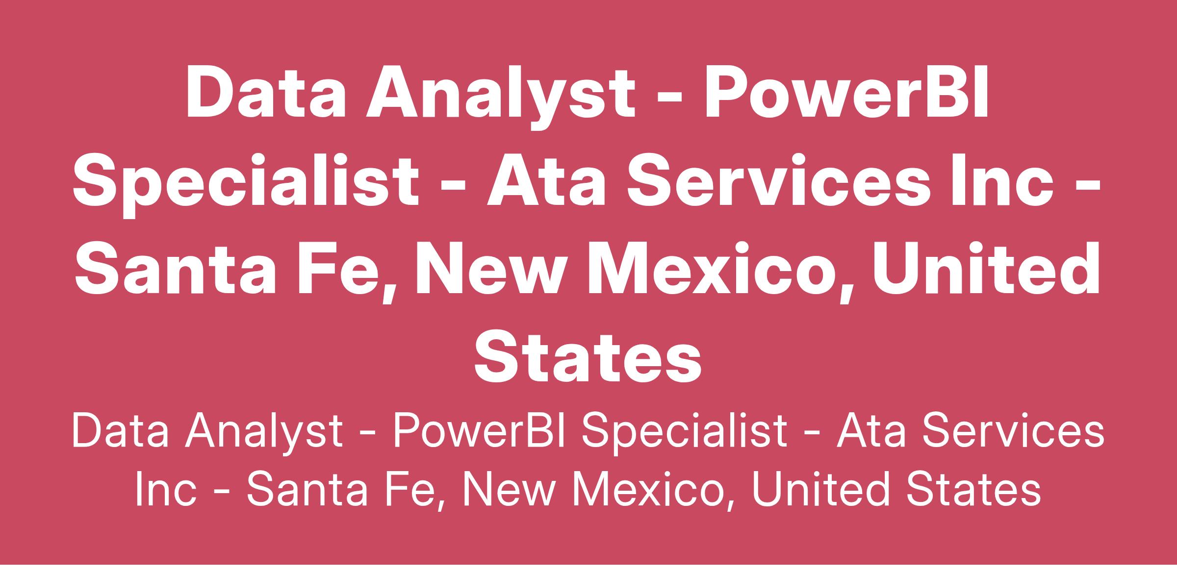 ATA Services Inc. is currently seeking to hire an experienced Data Analyst – PowerBI Specialist to work on a long-term temporary assignment with the State of New Mexico Department of Health in Santa Fe, New Mexico.