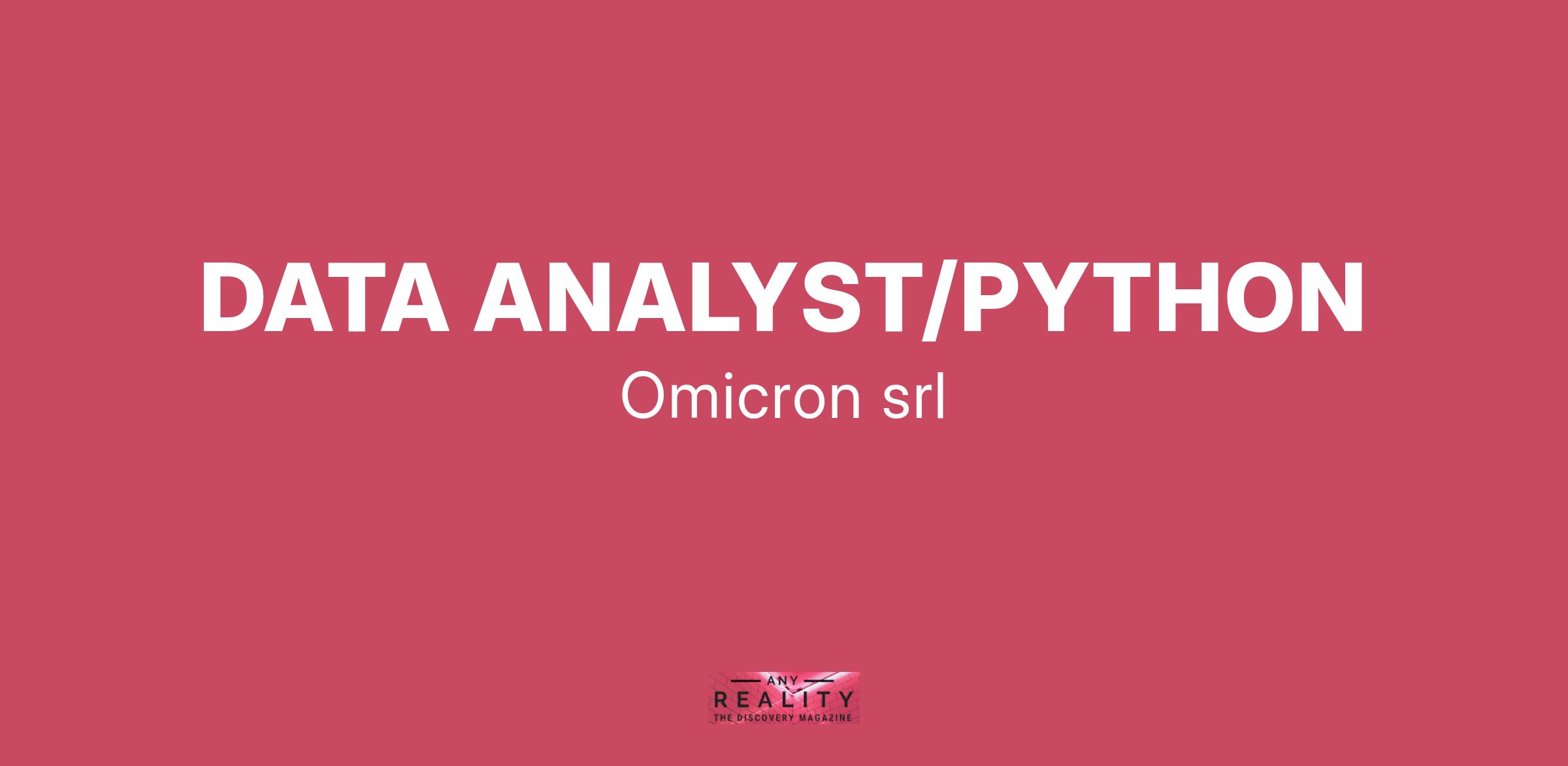 Omicron S.r.l., società in forte espansione nell’area della consulenza informatica ricerca: DATA ANALYST/PYTHON (remoto) Il candidato supporterà nelle attività in qualità Data Analyst Senior in ambito assicurativo. Nello specifico, la risorsa si occuperà prevalentemente attività di analisi dei dati attraverso tecnologie in PYTHON (PROGRAMMING LANGUAGE) e/o R; MYSQL. È gradita la conoscenza di MICROSOFT POWER BI. - Non sono previste trasferte - Non è prevista reperibilità fuori orario Si offre: •Possibilità di contratto a tempo indeterminato. •Retribuzione fissa commisurata alle effettive competenze maturate. Sede di lavoro: remoto Gl’interessati possono candidarsi inviando il CV all'indirizzo mail: L’offerta si intende rivolta a candidati ambosessi, nel rispetto del D.Lgs. n. 198/2006 e ss.mm.ii. e dei Decreti Legislativi n. 215 e n. 216 del 2003 sulle parità di trattamento. I candidati sono invitati a leggere l’informativa privacy ai sensi degli artt. 13 e 14 del Reg. EU 679/2016.