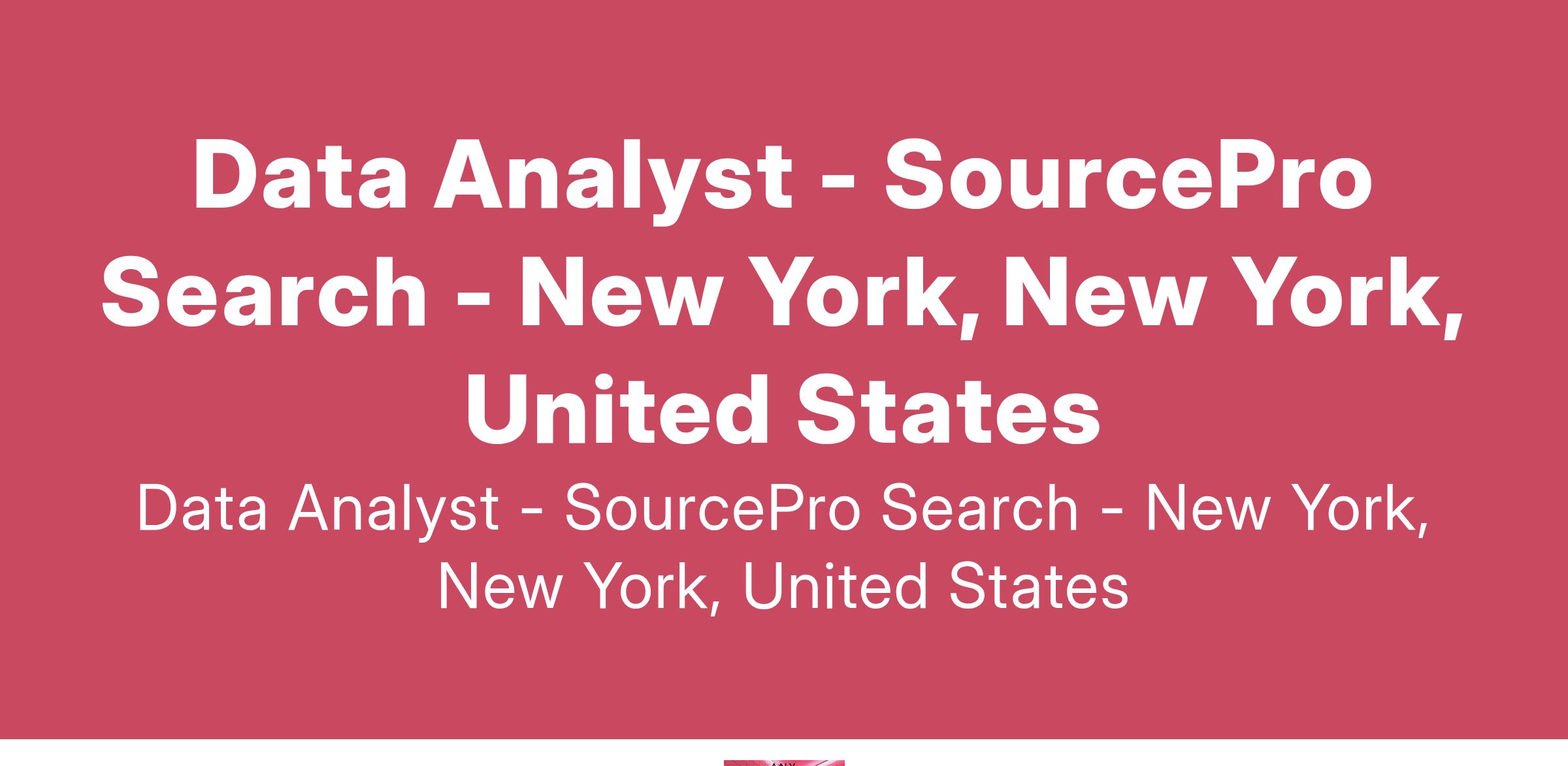 SourcePro Search has a fantastic opportunity for an experienced Data Analyst in the New York office of one of our top global clients.