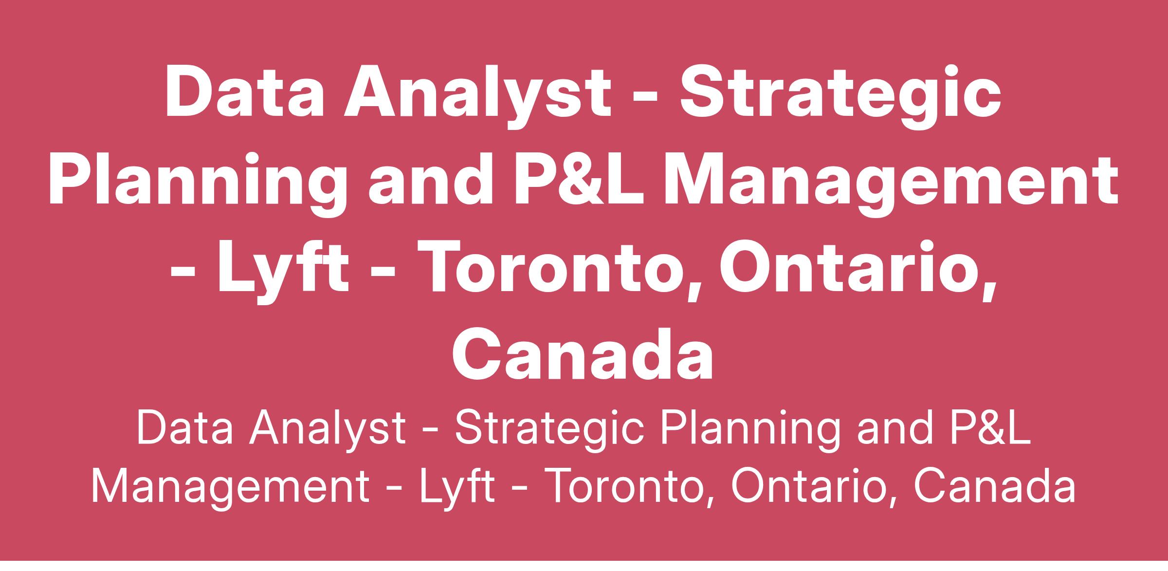 We are looking for a junior analyst to join the Strategic Planning and P&L management team within the Rideshare Central Management organization. This individual will work on key initiatives for Lyft’s Rideshare business and work closely with Data Scientist and Analysts in the team to shape Lyft’s future investment strategies.