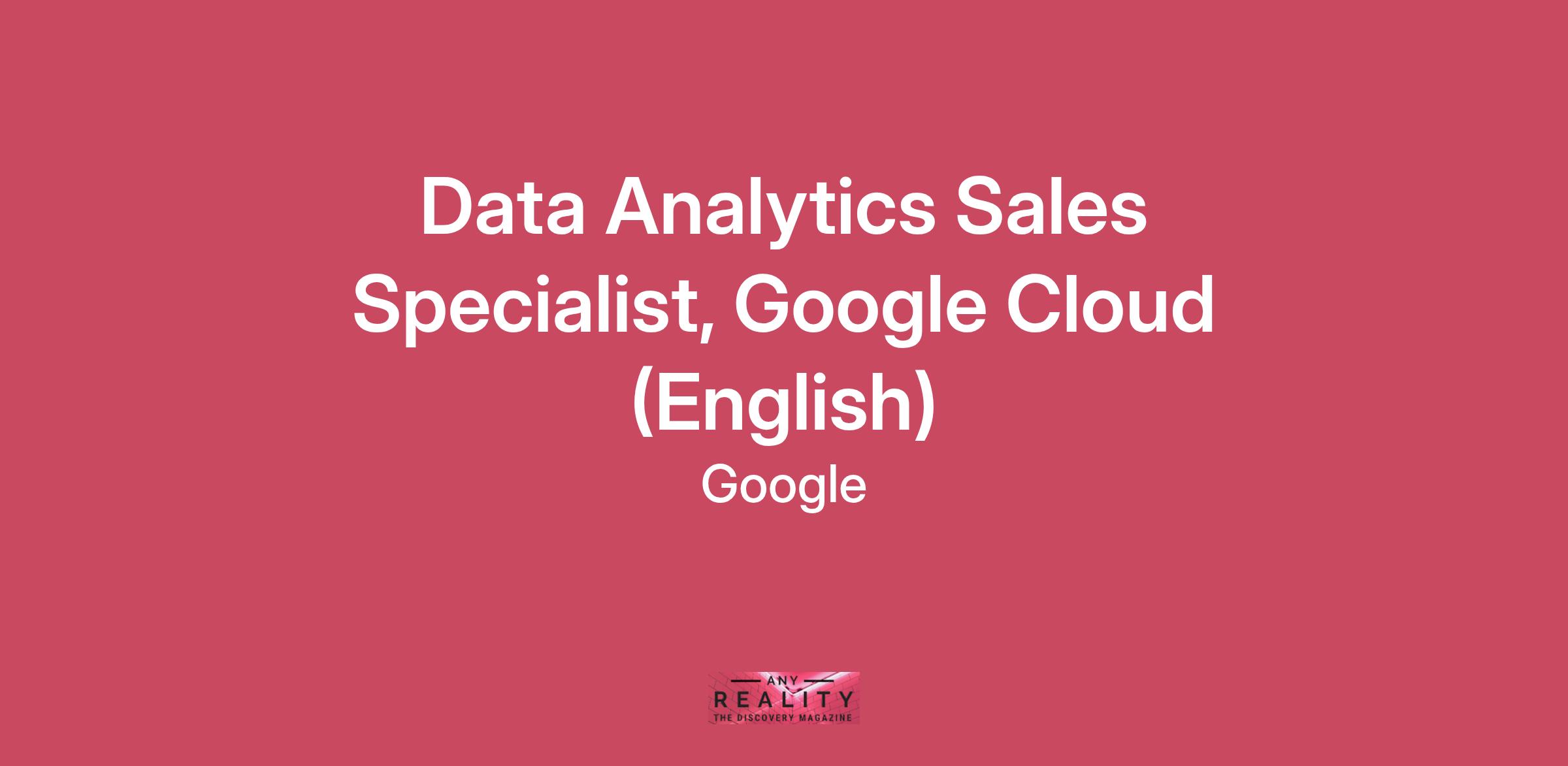 As a Data Analytics Sales Specialist, you will help us grow our Data Analytics business by building and expanding relationships with new and existing customers. In this role, you will work with customers to deliver true business value, demonstrate product functionality and provide a comprehensive overview of key business use cases. You will lead day-to-day relationships with cross-functional team members, serving as a solution lead within the business organization. You will lead go-to-market strategies and business plays, manage campaigns, and provide feedback to Product and Global Solutions Teams to inform our product solutions roadmap. You will shape customers' cloud and data analysis strategy and enable digital transformation. You will lead with empathy, while identifying innovative ways to multiply your impact and the impact of the team as a whole to deliver overall value for Google Cloud. Google Cloud accelerates every organization’s ability to digitally transform its business and industry. We deliver enterprise-grade solutions that leverage Google’s cutting-edge technology, and tools that help developers build more sustainably. Customers in more than 200 countries and territories turn to Google Cloud as their trusted partner to enable growth and solve their most critical business problems.Responsibilities