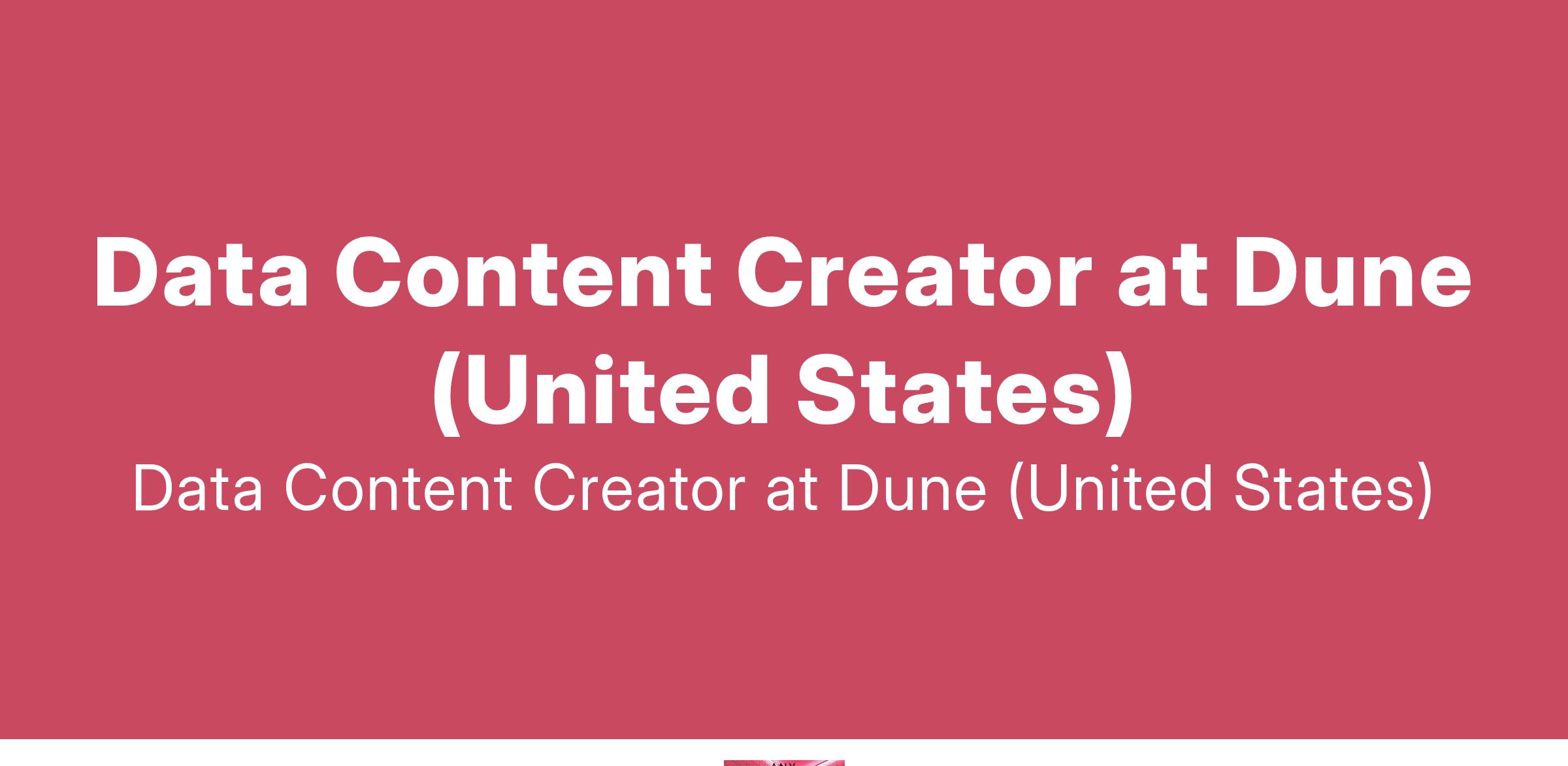 About Dune Dune is on a mission to make crypto data accessible. We’re a collaborative multi-chain analytics platform used by thousands of developers,...